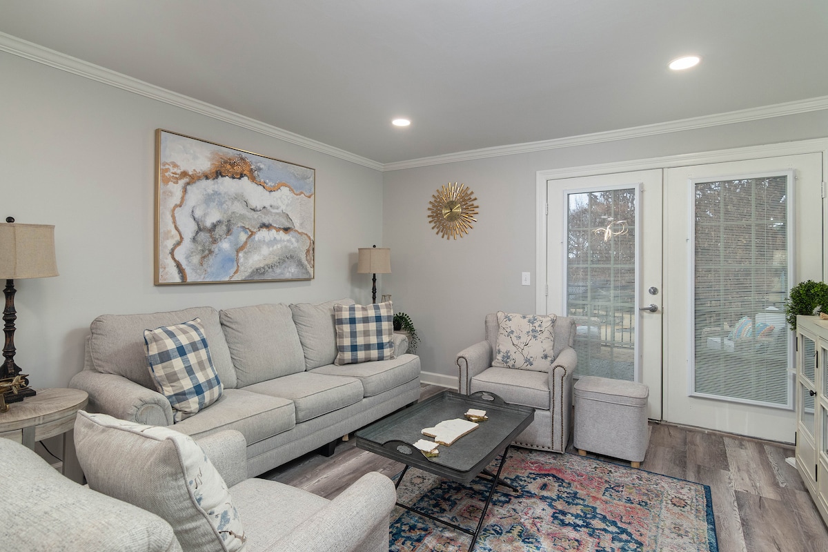 Dobro došli u ovaj udobni 1BR, 1BA prizemni kondominijum, samo nekoliko minuta od kampusa Ole Miss i 3 km od trga. Smještena u ograđenom kompleksu iza Starbaksa, ova ažurirana jedinica može da primi do 4 osobe sa bračnim krevetom i kaučem na razvlačenje. Uživajte u potpuno opremljenoj kuhinji, mašini za pranje/sušenje veša i jednom predviđenom parking mjestu. Istražite obližnje staze za trčanje, posjetite stadion Vaught-Hemingway ili prošetajte do restorana i prodavnica u Oksfordu. Savršeno za sportove, porodične posjete ili vikend-putovanje!