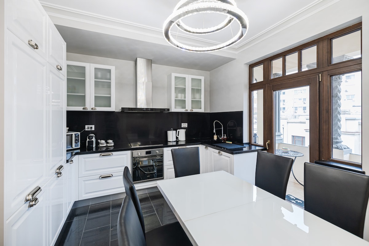 Dobrodošli u naš moderan, dizajnerski renoviran apartman smešten u prelepo obnovljenoj istorijskoj zgradi na čuvenom bulevaru Dačija, nekoliko koraka od Pjaca Romane. Sa svetlim dnevnim boravkom, 2 spavaće sobe, 2 kupatila, potpuno opremljenom kuhinjom, balkonom, vrhunskim završnim obradama i vrhunskim pogodnostima, možemo udobno da ugostimo do 6 gostiju, sa 2 bračna kreveta i kaučem na razvlačenje. Idealno za parove, porodice i poslovne putnike – elegantno, udobno i idealno smešteno u srcu grada.