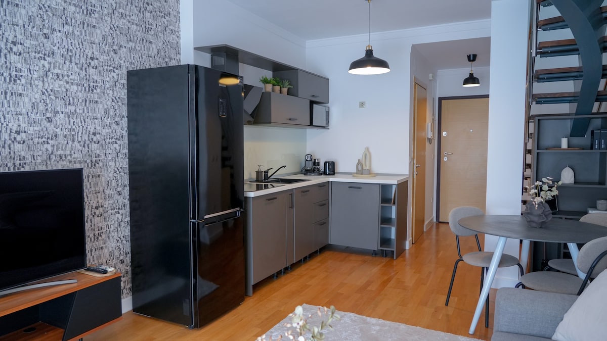 Svaki dom je drugačiji i sve što biste mogli da poželite je ovde. Ovaj vrhunski izvanredan stan je izvanredan posao. 2 spavaće sobe sa 160 x 200 kreveta, 1 dnevni boravak sa kaučem na razvlačenje koji može da primi do 6 osoba, 2 kupatila sa kadom. Teretana, tržni centar, poslovna četvrt, restorani, podzemna željeznica, potpuno opremljena kuhinja, stanice za kafu i čaj, mašina za pranje i sušenje veša, fen, pegla na paru, 2 velika TV-a, 3 klima-uređaja, plinski bojler. Besplatan Wi-Fi, besplatan parking, novi blok. Savršena lokacija.