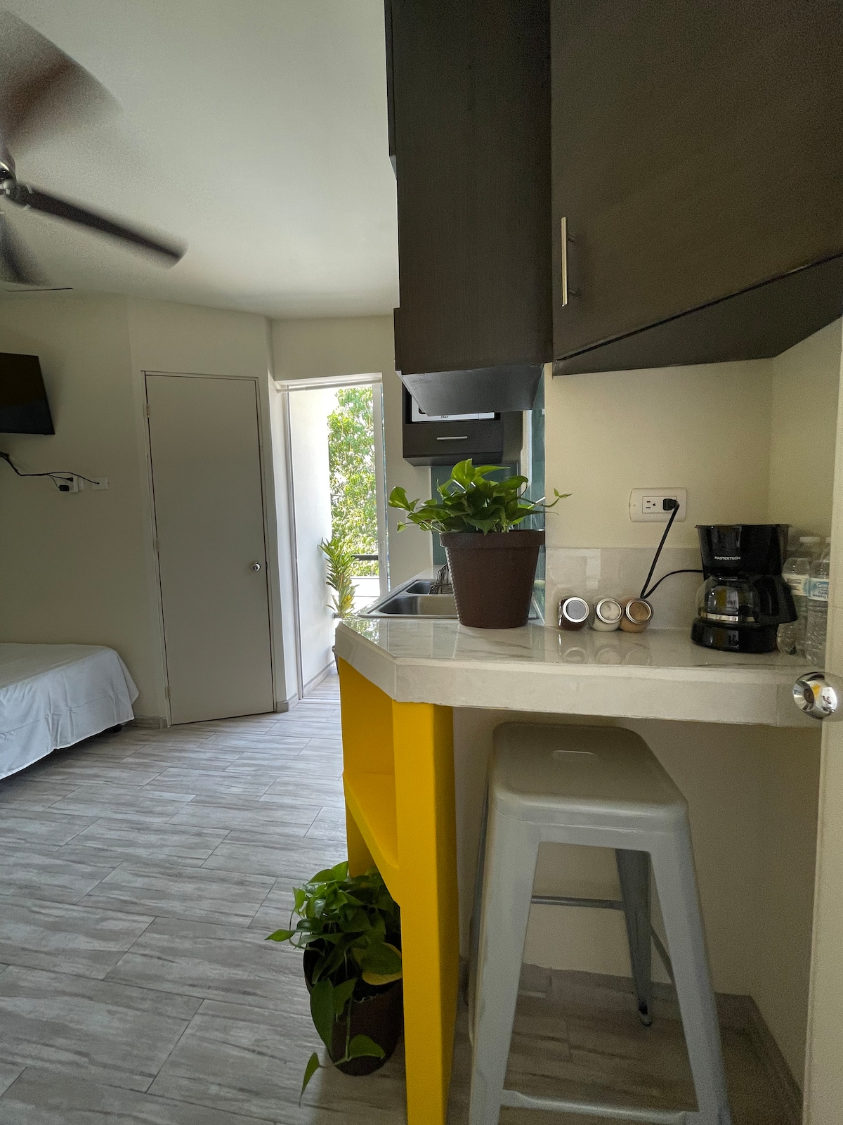 Udoban PRIVATNI mini apartman sa 1 krevetom, koji se nalazi u centralnom, privatnom, mirnom i bezbjednom rezidencijalnom dijelu San Salvadora. Sopstveno kupatilo, klima-uređaj u sobi, Wi-Fi, Smart TV sa Netflix-om, ormar, frižider, 1 parking na otvorenom itd. Objekat se nalazi u blizini stadiona Cuscatlán i 10 minuta od tržnih centara kao što su La Gran Vía, Multiplaza, El Salvador i 5 minuta od Starbaksa, restorana, apoteka itd.