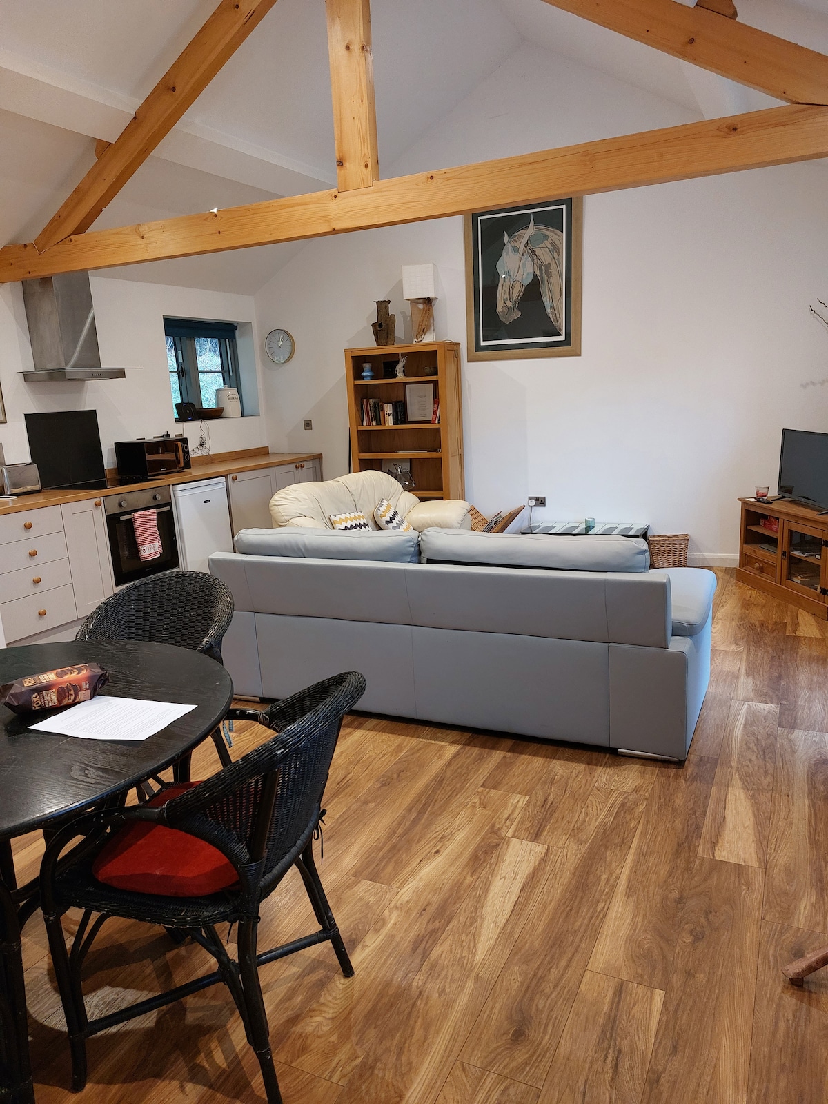 Ova stručno renovirana Trenerska kuća iz 19. veka ima karakter i spremna je za vaš luksuzni odmor za opuštanje. Dnevni boravak otvorenog plana ima izuzetan pogled, a kada želite da promenite, tu je veliki pametni TV i kvalitetan širok spektar zabave. Kuhinja ima Indukcionu ploču i rernu, mašinu za sudove i mašinu za pranje veša, kao i sve lonce, tiganje i pribor koji su vam potrebni za spremanje ukusnih jela. Tuš kabina/WC je praktično ušuškana u ćošku. Popnite se uz prepoznatljivo hrastovo stepenište i pronađite spavaću sobu na spratu, sa svojim impresivnim okruglim prozorom. U njoj može da spava najviše troje ljudi u bračnom krevetu i zasebnom krevetu za jednu osobu, a takođe ima mesta za putni krevetac za dete do 2 godine. Trenerska kuća je idealna za parove na romantičnom odmoru ili za porodicu sa malom decom koja traže bezbedan prostor za opuštanje i igru. KLJUČNE KARAKTERISTIKE - Jedna spavaća soba – na spratu, sa bračnim krevetom i bračnim krevetom, prostor za putni krevetac. - Jedna tuš kabina/WC šolja – dole. - Može da primi najviše tri osobe i do 2 godine. - Privatna spoljna terasa sa pogledom, zajednička upotreba livade i bašte od 1,5 hektara. - Psi su dobrodošli, najviše dva, mala dodatna naknada. - Mala deca su dobrodošla (ali možda ćete morati da ponesete stepenice zbog bezbednosti). - Smart TV (Netflix, iPlayer, Freesat itd.). - Kvalitetni širokopojasni internet/Wi-Fi (besplatno). - Indukciona ploča, rerna, mikrotalasna rerna, frižider (po potrebi je dostupan zamrzivač), mašina za pranje sudova. - Trpezarijski sto za četvoro, dva kožna kauča. - Mašina za pranje veša (i upotreba mašine za sušenje veša ako je potrebno). - Podno grijanje (pokreće ga ekološki prihvatljive pumpe za grejanje sa izvorom vazduha). - Plamenik od drveta, prva korpa od trupaca je besplatna. Trenerska kuća se može rezervisati tokom nedelje (početak dana u petak), a za vikend i kratke pauze sredinom nedelje.