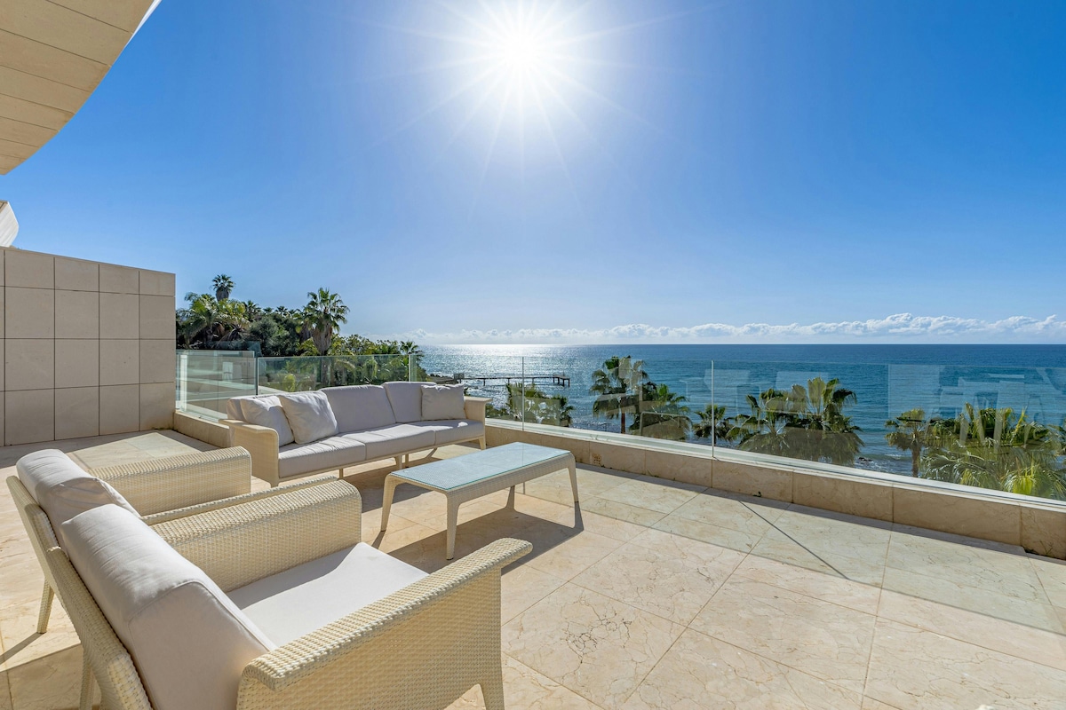 Ako tražite najbolji pogled na more u Esteponi, dobrodošli kući. Pravi život na plaži, sa privatnim direktnim pristupom moru i terasom od skoro 60 m² dizajniranom da usporite i uživate. Doručci sa pogledom na Afriku i Gibraltar, dugi roštilji, senčene sieste i zalasci sunca uz zvuk talasa. Prostrani enterijer, stalno prirodno osvetljenje i udoban, intiman raspored sa električnim kaminom. Idealno za porodice, parove ili grupe prijatelja. Samo more, prostor i mir.
