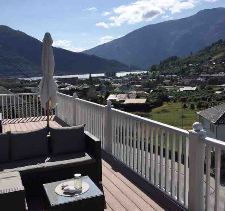 Jednostavan i miran smeštaj, koji se nalazi u centru. Kuća je centralna , dok se sa vrta pruža fantastičan lep pogled na fjord i planinu. 7 - 8 minuta hoda do centra grada. Glavna spavaća soba ima krevet od 150 cm. Dnevni boravak ima i trpezariju i salon. TV i internet ( vlakna). Veliko i dobro kupatilo. 2 spavaće sobe sa krevetima od 120 cm, po želji se mogu podići sa 2 jorgana. 500 NOK po dodatnoj sobi. Kuhinja ima jednostavan standard, ali sve što vam je potrebno je tu. Terasa sa jednostavnim baštenskim nameštajem -