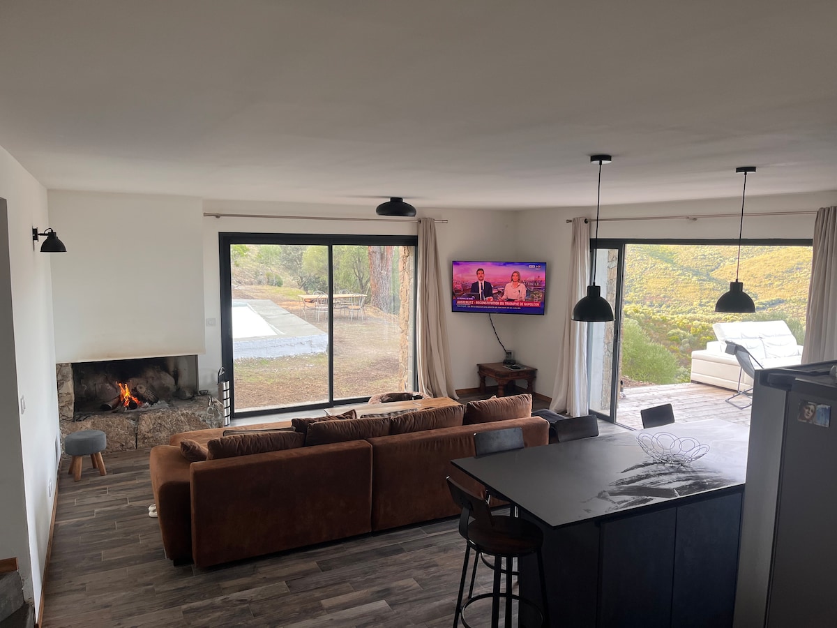 Šarmantna kamena rezidencija u regionu koju je u potpunosti izgradio vlasnik, uz poštovanje životne sredine, između mora, planina i bazena (ocena 5 zvezdica). 5 minuta od čuvenog klanca de l'Asco, reke, vodopada. 25 minuta od najlepših plaža Balanje, Ostrikona, Lozara. Na netaknutom mjestu, u potpunom miru sa izvanrednim pogledom. Ovaj smještaj je savršen za romantičan odmor sa privatnim pristupom beskonačnom bazenu vlasnika. Optički internet