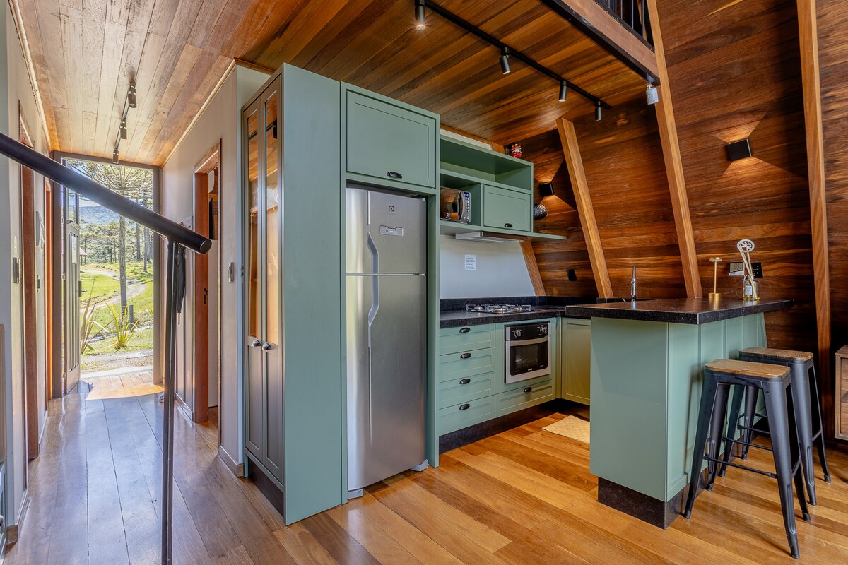 Otkrijte šarm planina u ovoj jedinstvenoj i udobnoj kolibi. S pogledom na ledeno jezero i Moro das Tores, gdje je zalazak sunca čaroban. Uživajte u vertikalnoj tuš-kabini sa 6 načina rada, uključujući vodopad, i hidromasažnoj kadi sa ozonskom terapijom i hromoterapijom. Doživljaj je upotpunjen električnom i grijanom daskom za WC šolju, grijanim podom, Wi-Fi mrežom i kuhinjom opremljenom podrumom, tosterom i električnim aparatom za kafu. Potpuna privatnost sa natkrivenom garažom i elektronskom kapijom.