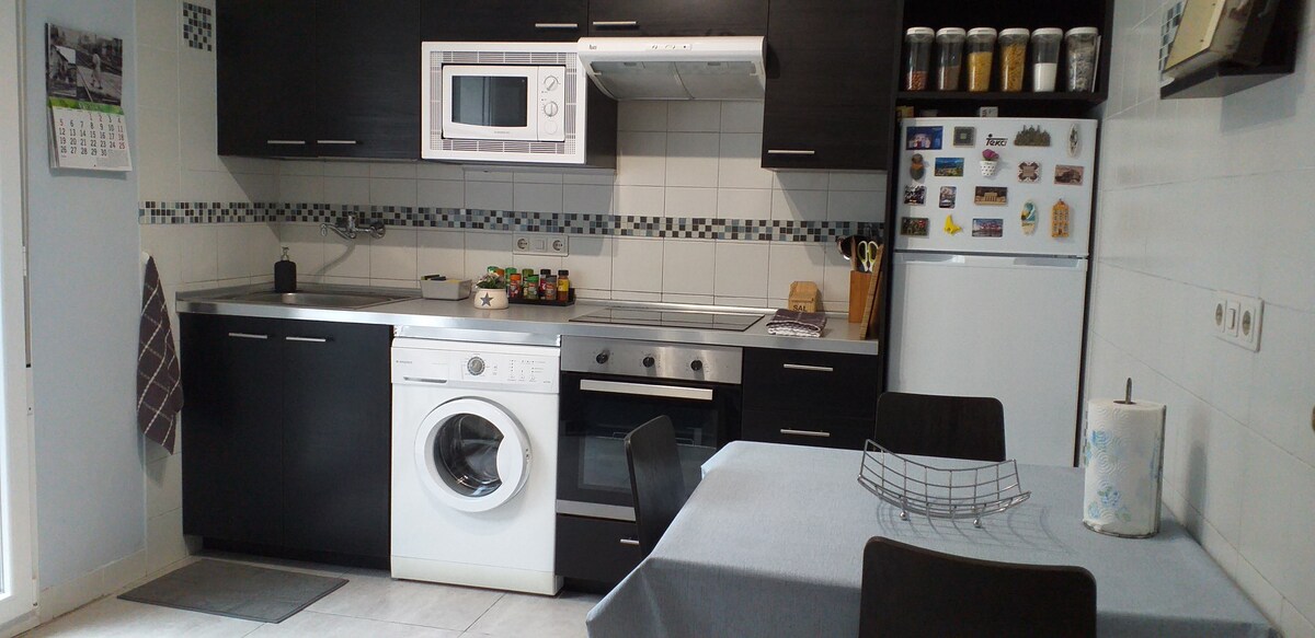 Disfruta de la sencillez de este alojamiento tranquilo y céntrico. Piso reformado en el 2021 en el centro de Mungia, ideal para parejas o familias. - 2 habitaciones (1 cama de matrimonio en cada una). - 1 baño - Vestidor - Salón - Cocina No dispone de parking privado pero es fácil aparcar en la zona. Es un cuarto piso SIN ASCENSOR. A 13km de las playas de Bakio y Gorliz y a 16km de Bilbao. A 10km del Aeropuerto de Bilbao. Perfecto para conocer los alrededores de la provincia de Bizkaia.