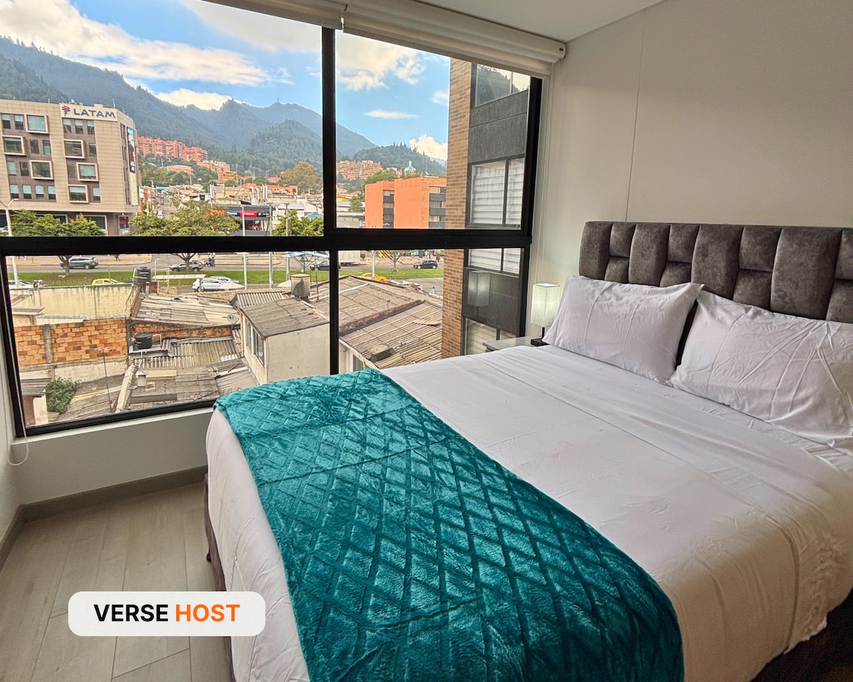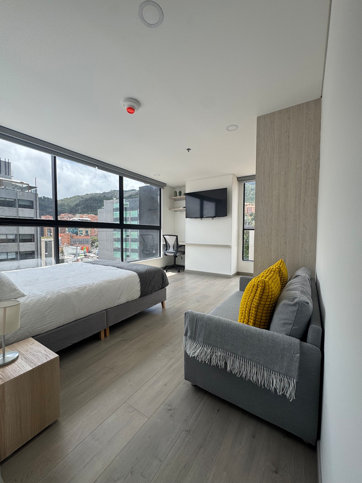 Potpuno nov stan sa neverovatnim pogledom na Bogotu i planine sa osam spratova. Moderan, nordijski i minimalistički stil sa udobnom privatnom terasom savršenom za Bbq i okupljanje sa prijateljima ili parom. Centralna lokacija, u blizini pijace Usaquen i restorana, jednostavan pristup i prevoz. Savršen izbor za jednu osobu ili mladi par. Stan ima 1 spavaću sobu, 1,5 kupatilo i uključuje mašinu za pranje/sušenje veša i frižider, privatni parking i bezbednost 24 sata.