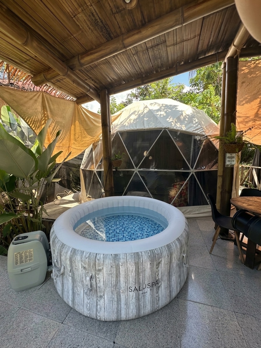 Imagine waking in an extraordinary geodesic bio-dome, just 100 meters from Uvita Beach, Costa Rica. This isn't just a stay; it's a unique fusion of luxury and nature. Our dome's exquisite bamboo detailing creates an organic, spacious feel. Step onto your private deck to jungle sounds and stunning sunsets. A short walk leads to Uvita Beach's mystical "Whale's Tail" – where rainforest meets ocean. This spot is renowned for its raw beauty and seasonal whale migrations.