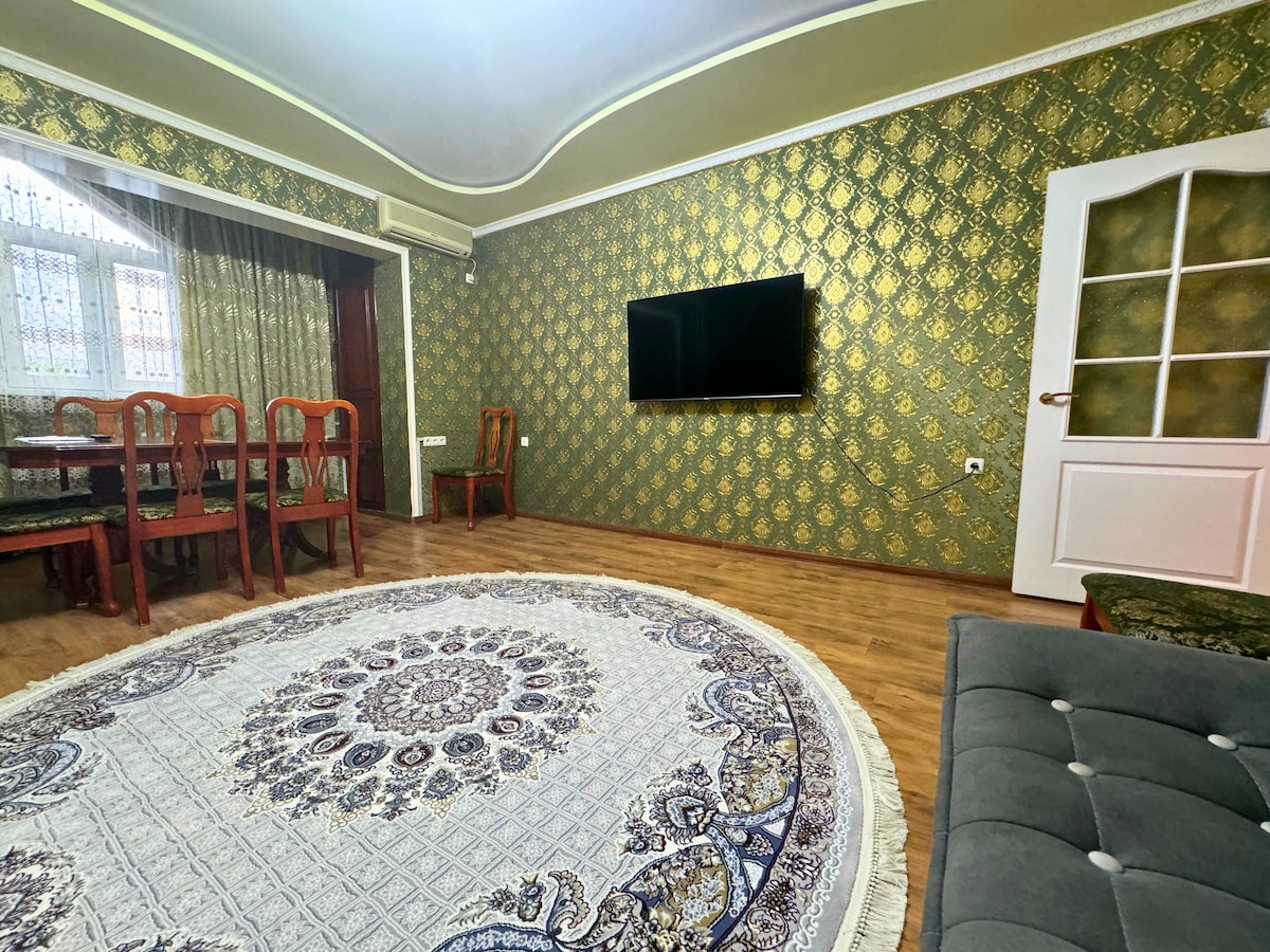 Wonderful place to stay. Condo fully furnished, peaceful place, green plants with wonderful view. Well located condo was renovated in February 2024 ( 115 m2) There are 3 large rooms: 1 bedroom, 1 cabinet (office) 1 large living room with sofa ( folding bed), and balcony with wonderful view The convenient location of the home allows you to easily get to the most popular sights of Samarkand. This will make your stay even more comfortable: you can simply walk along the Univer. Boulev. street.