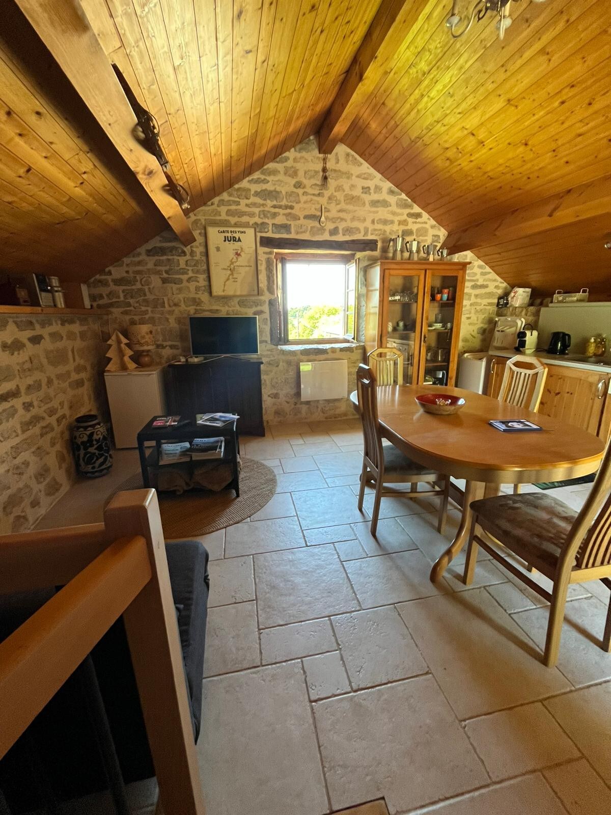 Au cœur d'un charmant petit village du vignoble jurassien, nombreux sites touristiques. Montagnes, lacs, cascades, rando, terroirs, patrimoines, thermes ; commerces à 10km (Arbois) - RDC: cuisine équipée, séjour, canapé , TV, wifi - SALLE D'EAU : douche à l'italienne, double vasque, toilette, lave linge, sèche linge - À L'ÉTAGE : mezzanine avec clic clac 2 pers, toilette et lavabo -Une chambre 1 lit double 2 pers. - EXTÉRIEUR: terrasse, salon de jardin, parasol, barbecue charbon et électrique.