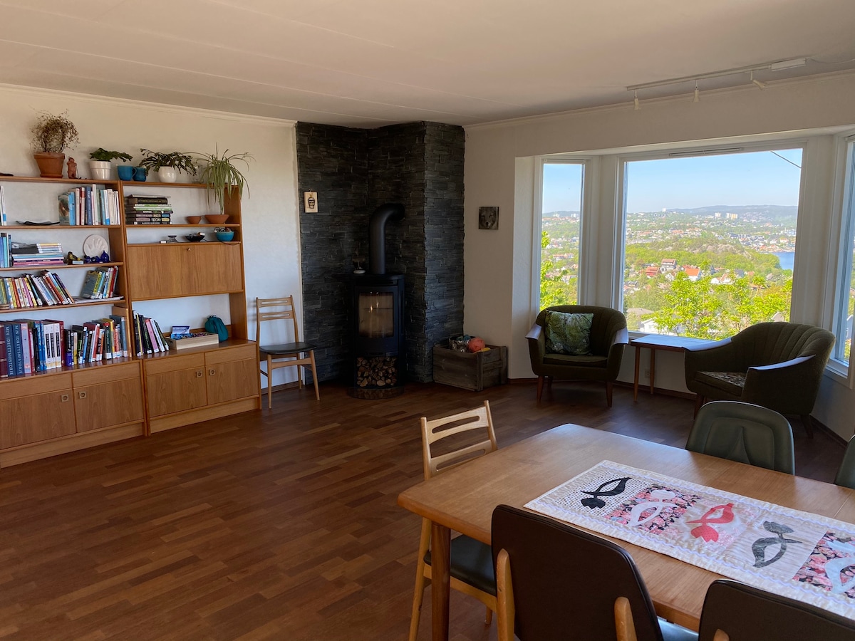 Veliki i udoban stan u blizini centra Kristijansanda. Stan ima kuhinju, dvije spavaće sobe i kupatilo; odgovara porodici i dužim boravcima. Ima dva balkona i baštu kojoj se može pristupiti iz glavne spavaće sobe i dnevne sobe. Kuhinja je modernog skandinavskog dizajna sa trpezarijom za šest osoba i ima stolicu za malu decu. Prostrana dnevna soba. Kupatilo je dostupno iz hodnika i iz jedne od dve spavaće sobe. Wi-Fi. Moguć je parking za četiri automobila i punjenje električnih vozila