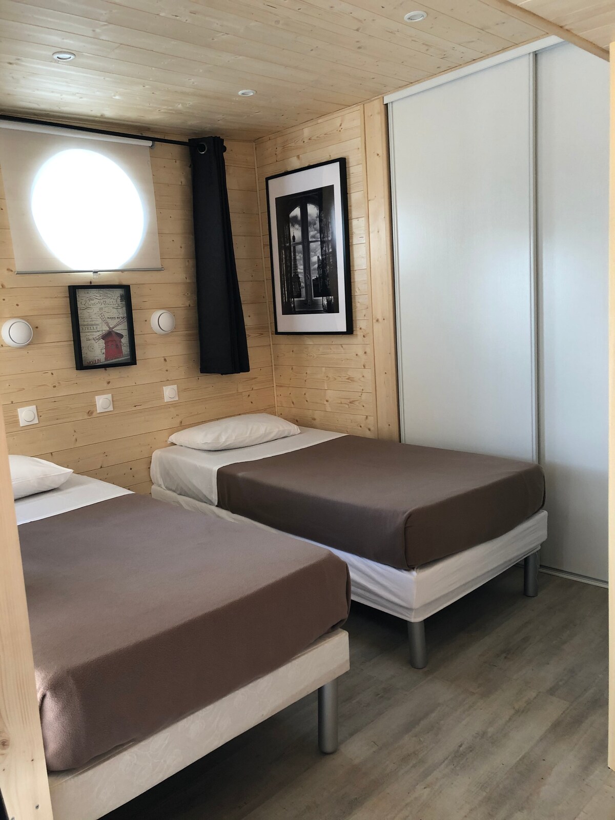 Planinska kuća, u mirnom području, udaljena je 10 minuta od RER A i E sa autobusom 320. 15 Klm od Pariza i Diznilend parka. Nezavisan je, u zadnjem dijelu naše bašte (pogledajte fotografije) Cijenićete prostor za sjedenje, kuhinju, spavaću sobu i kupatilo. Savršen je za porodice, parove ili poslovne putnike sa dodatnim radnim stolom. Nema zabava... (Raspored spavanja: „pravi” krevet. Clic-clac sofa. Krevetac (10 € po boravku) na zahtjev.