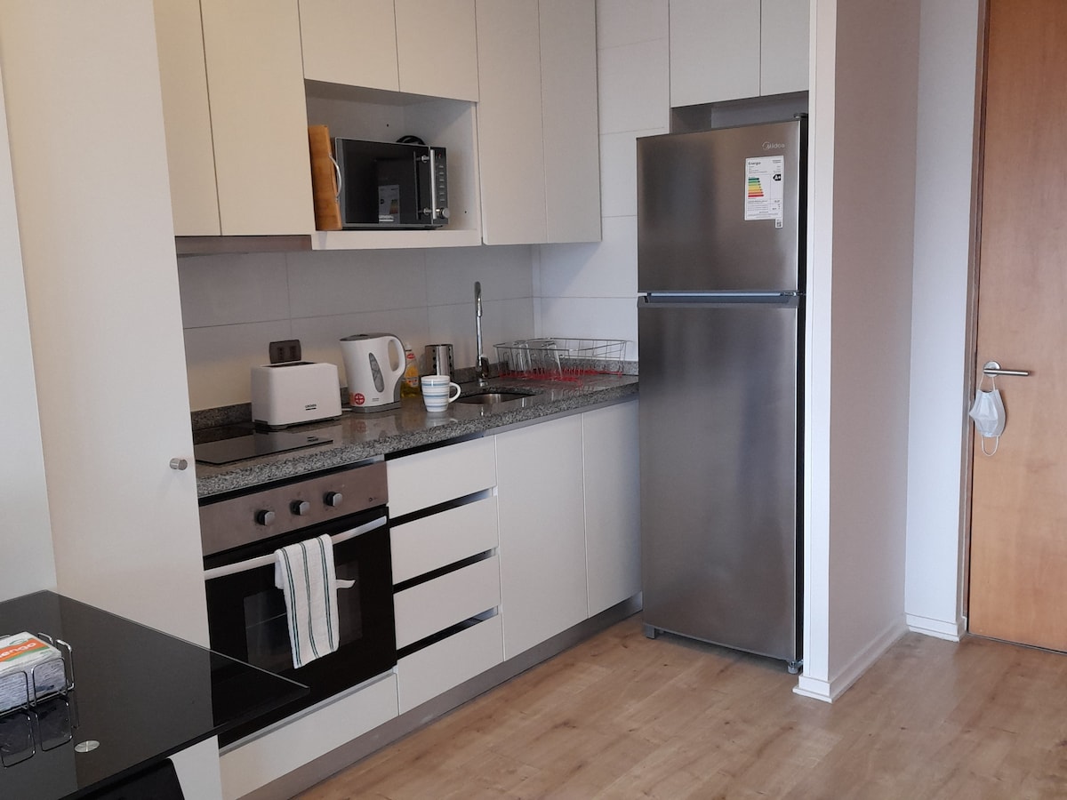 Departamento Estudio totalmente nuevo para dos personas en Isla Teja -Valdivia. En condominio privado con vigilancia 24 horas. Consta de Lavandería, Salas CoWork, Bicicleteros. Ubicado cerca de parques, restantes y bares mas destacados de la ciudad, a pasos de la Costanera, Parque Saval, Casino Dreams y Feria Fluvial. Consta de cocina totalmente equipada, de granito con horno, campana y encimera de vitrocerámica. Estacionamiento privado gratuito incluido.