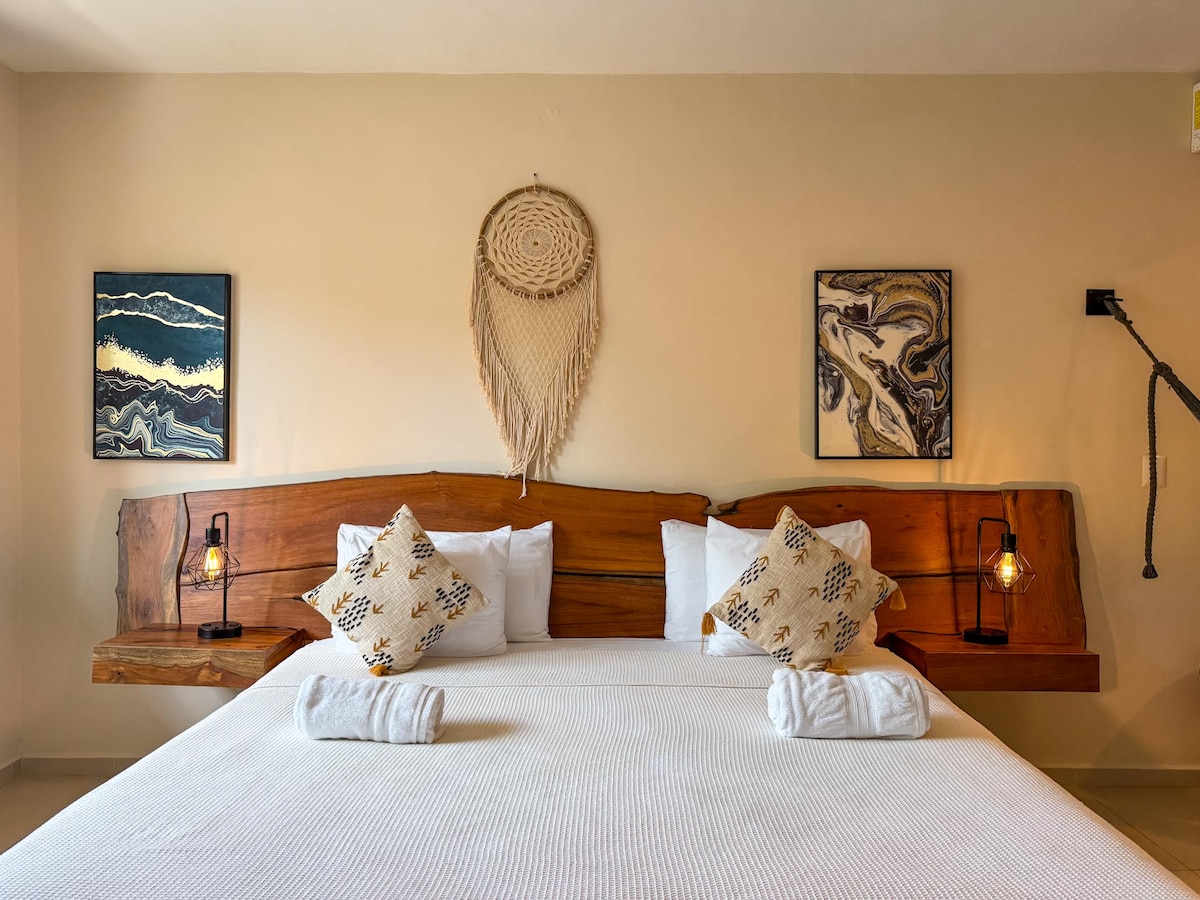 Prostran i udoban za doživljaj „KIIN WAYEB” Naše najekskluzivnije sobe su osmišljene da vam pruže nezaboravan doživljaj, gdje se udobnost i luksuz spajaju sa šarmom jukatekanske kulture. Ove sobe su opremljene sa dva udobna bračna kreveta, gdje se možete odmoriti i probuditi renovirani, radni sto, Smart TV, klima-uređaj, toplu vodu i viseću ležaljku za odmor u poslijepodnevnim satima u klasičnom jukatečkom stilu.