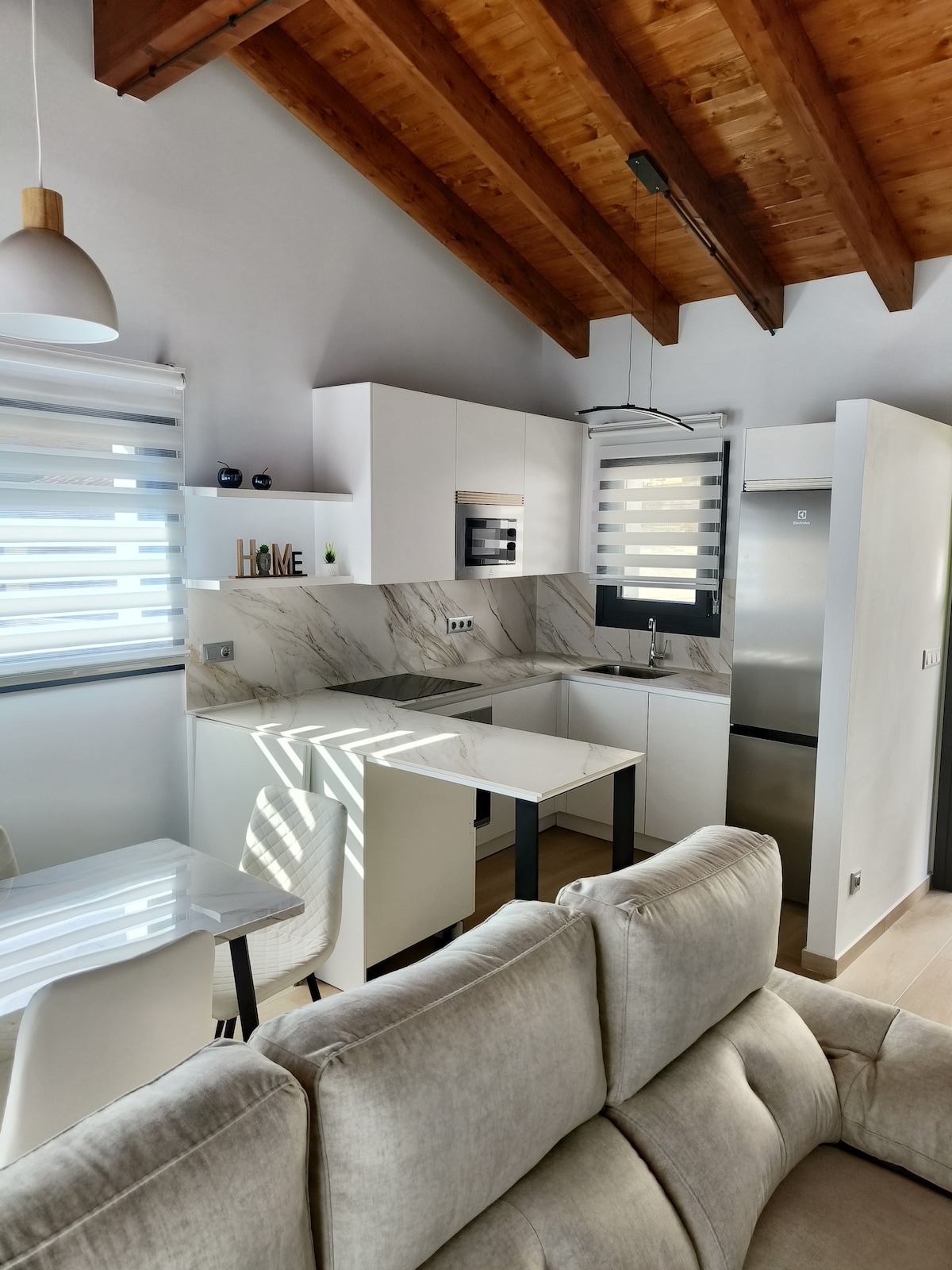 Naš PLANINSKI POTKROVLJE je posebno dizajniran za parove ili parove sa decom. Ističe se prostranim i udobnim sobama, sve sa fantastičnim pogledom na planine. - Dnevna soba sa kaminom i panoramskim pogledom. - Potpuno opremljena kuhinja. - Bračni krevet na razvlačenje i kauč na razvlačenje. - Kupatilo od prirodnog kamena. – Zagrejana panoramska veranda. - Letnja kuhinja sa roštiljem i peći na drva. - Bazen od prirodnog kamena sa prostorom za sunčanje. - Fontane, vrtovi i prostrane terase.