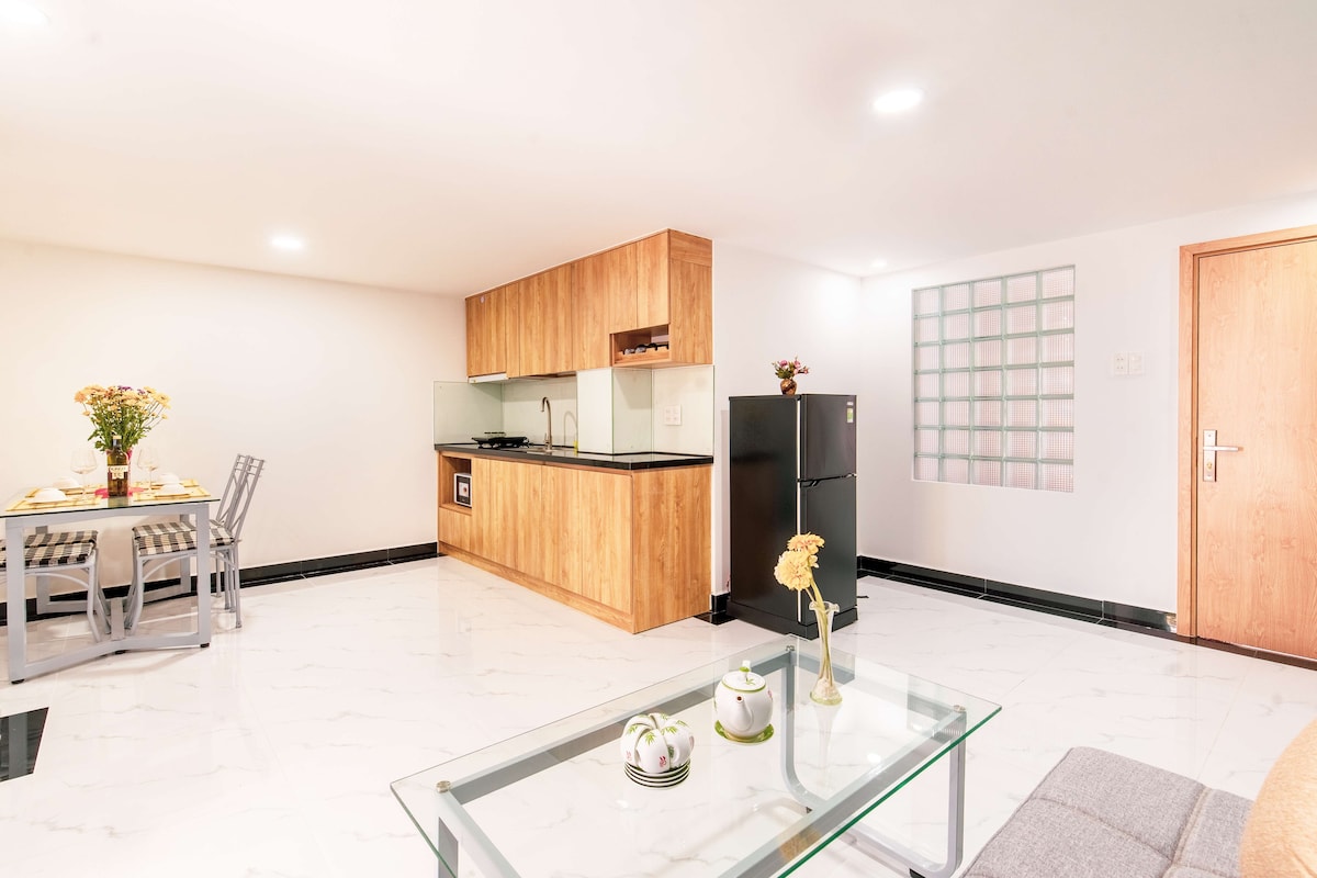 Boravite u srcu Da Lata u ovom elegantnom jednosobnom stanu sa zelenim balkonom! Sa toplim zidovima od cigle, bogatim drvenim enterijerom i modernom udobnošću, ovaj udoban prostor uključuje potpuno opremljenu kuhinju, udoban salon i pametni TV. Samo nekoliko koraka od noćne pijace, kafića i vrhunskih atrakcija, savršen je za parove ili putnike koji putuju sami i traže miran, ali centralni odmor. Opustite se, opustite i uživajte u šarmu Da Lata!