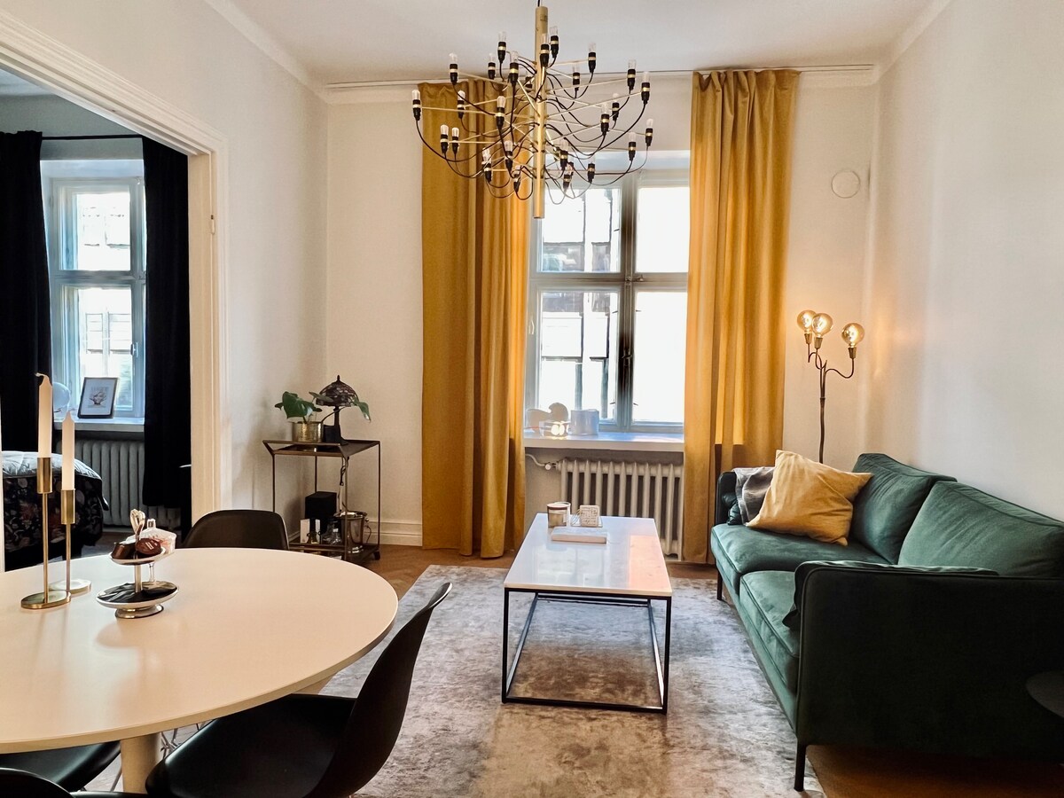 Divan boravak usred Dizajnerskog okruga! Ovaj prostrani studio ima sve što vam treba da se opustite i uživate u boravku u Helsinkiju. Ovaj nedavno renovirani neoklasični stan nalazi se u mirnom uglu pored parka Sinebrychoff i u blizini je svih najzanimljivijih restorana, butika, šetnji i znamenitosti. Dođite i zaljubite se! Imajte na umu da stan nema zasebnu spavaću sobu. Na raspolaganju je niša za 2 osobe koja dijeli krevet + kauč za 2 osobe, širine 140 cm.