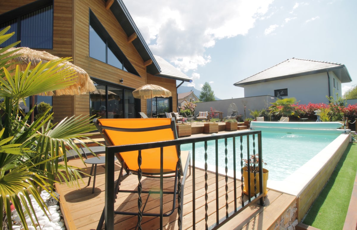 Vila sa bazenom i pogledom na Allevar u stilu arhitekte sa bazenom i pogledom na Alpe