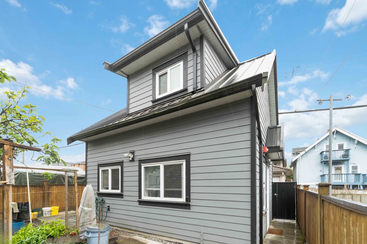 Moderna gostinjska kuća ima 2 spavaće sobe, jedno kupatilo i može udobno da spava 4. Svodni plafoni i otvoreni tlocrt (zajedno sa privatnim unutrašnjim dvorištem), ova jedinica od 180 kvadratnih metara ima sve sadržaje. Nalazi se na pješačkoj udaljenosti od namirnica, kafića, restorana i potpunog kulturnog doživljaja Vankuvera, sa pogledom na planine. Lokacija omogućava jednostavan pristup javnom prevozu, centru grada ili brzom autoputu do planina. Idealno za parove ili porodice od 4 osobe. Samo za nepušače.