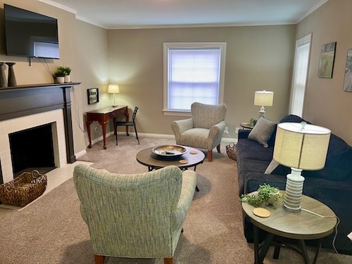 Ovaj jednosobni / jednosobni stan ima visoke plafone i izloženu ciglu, a pričvršćen je za dom vašeg domaćina - viktorijansku kuću u nizu na jednoj od istorijskih popločanih ulica Evansvila. Uživajte u jednostavnom samostalnom dolasku i lokaciji koja se nalazi u centru grada u blizini rijeke Ohajo, centra Evansvila i četvrti Haynie's Corner. Fordov centar, kazino Bali i mnogi najbolji restorani i barovi Evansvila udaljeni su kratkom šetnjom.