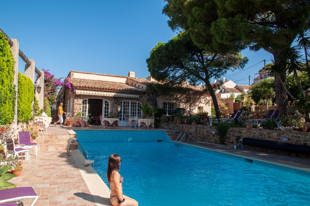 Šarmantni hotel, staro kamenje 1857 , tiha i prostrana, šarmantna soba, bračni krevet, usluga čišćenja. Velika cvetna bašta, kolekcija kaktusa, veliki bazen udaljen 50 m od mora. Besplatan Wi-Fi. Gurmanska kuća za doručak služi se oko bazena, na terasi sa pogledom na more ili ispod borove šume. Plaćena zatvorena garaža, besplatno u ćorsokaku, pas je dozvoljen uz doplatu. ping pong , loptice.