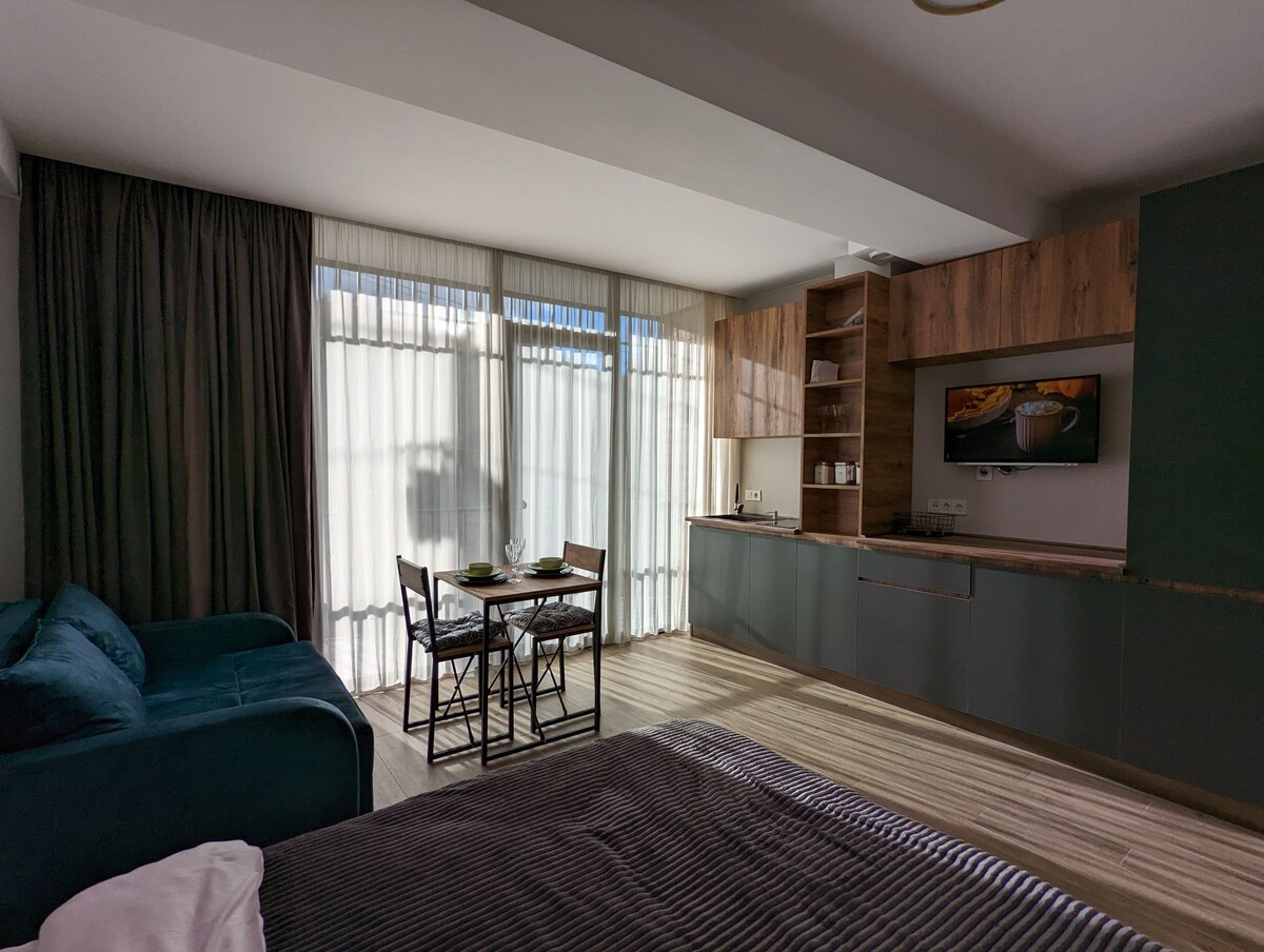 Uživaćete u lakom pristupu svemu, iz hotela sa 4 zvezdice koja se nalazi u centru grada. U blizini se nalaze lepi parkovi, šumska zona za svež vazduh i udaljena je 3 minuta hoda od zime, najbolje mesto za skijanje u zimskom olimpijskom jeziku Didveli sa žičarima. Stan površine 40 m2 je studio sa velikim balkonom. Kreveti imaju posteljinu, peškire, sve posuđe i toster, čajnik, veš mašina. Stan se nalazi na 4. spratu sa savršenim pogledom. Bazen privremeno ne radi.