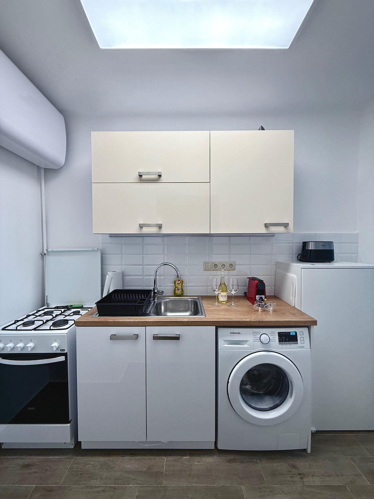 Uživajte u šarmu Budima u ovom modernom potkrovlju, nekoliko koraka od Budinskog zamka. Ostanite rashlađeni uz klima-uređaj i povezani uz brz Wi-Fi. Strimujte Netflix, HBO Max ili YouTube na TV-u sa ravnim ekranom ili 27-inčnom iMac-u. Potpuno opremljena kuhinja uključuje mašinu za sudove i mikrotalasnu pećnicu, a tu je i mašina za pranje veša za dodatnu udobnost. Stanica Deli i metro M2 udaljeni su samo 100 metara za lak pristup Budimpešti.