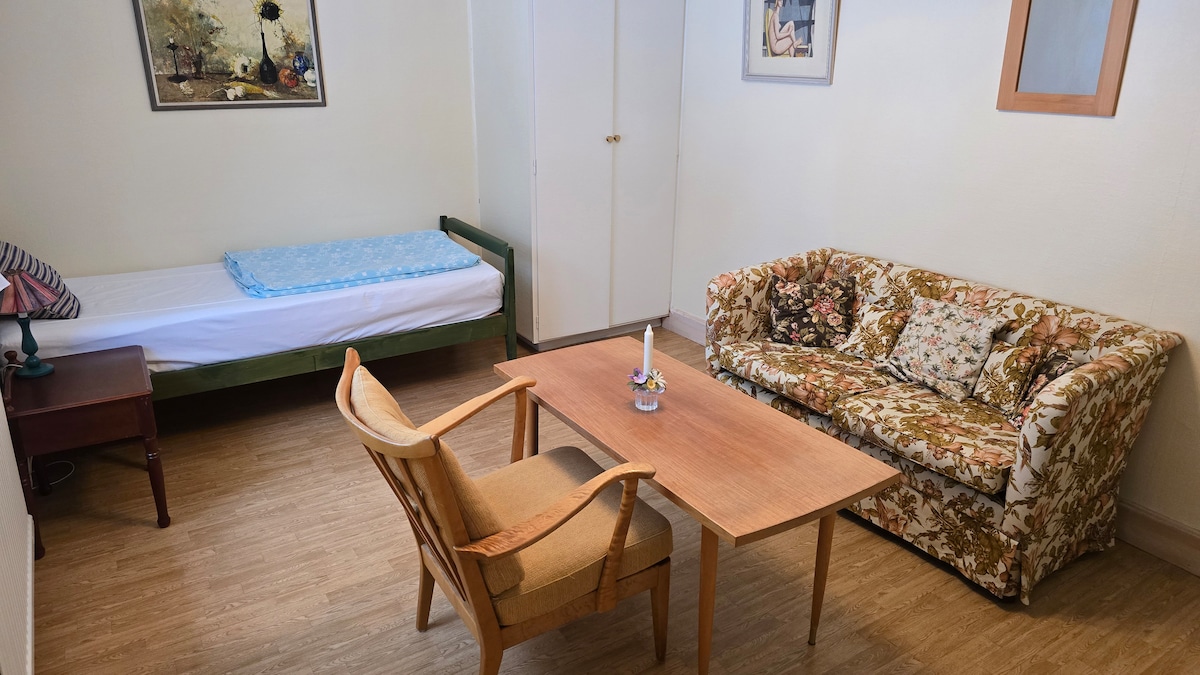 Lep smeštaj u sopstvenoj seoskoj kućici opremljenoj i za kraći i za duže boravke. Objekat se sastoji od sobe sa svim sadržajima. Kratka udaljenost do komunikacije i drugih aktivnosti, aerodrom 20 km, Kupovina Birsta 2 km, Sundsvalls i Timrås centar 7 km. Lako se nalazi sa E4 i E14. Kada napustite E4, udaljeni ste samo 2 km od cilja.