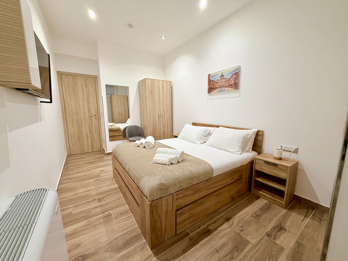 Potpuno renoviran stan na samo 100 metara od stanice Čipro (Metro A), na nekoliko minuta hoda od Vatikanskih muzeja i Trga Svetog Petra. Ima dve svetle spavaće sobe, jednu sa balkonom i drugu sa prozorom, obe sa pametnim televizorima, klima-uređajem i radijatorima. Dva kupatila: jedno u sklopu spavaće sobe, a drugo između dnevne sobe i druge spavaće sobe. Kuhinja/dnevni boravak sa sofom. Mreže protiv komaraca za letnje boravke. Na samo nekoliko koraka od supermarketa, barova i restorana.