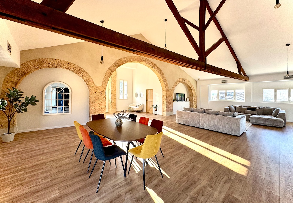 ✨ Loft d’exception au cœur d’Orange ✨ Lieu unique de 200 m² au charme atypique, avec arches voûtées, pierre apparente et volumes spectaculaires. Ce loft de standing offre 3 suites élégantes avec salle de bain privative, salon spacieux, salle à manger conviviale et cuisine moderne entièrement équipée. Détendez-vous dans le jacuzzi, puis prolongez la magie autour d’un apéritif ou d’un dîner face au Mont Ventoux et aux monuments d’Orange. Autoroute à 1 min, centre à pied, parking gratuit.
