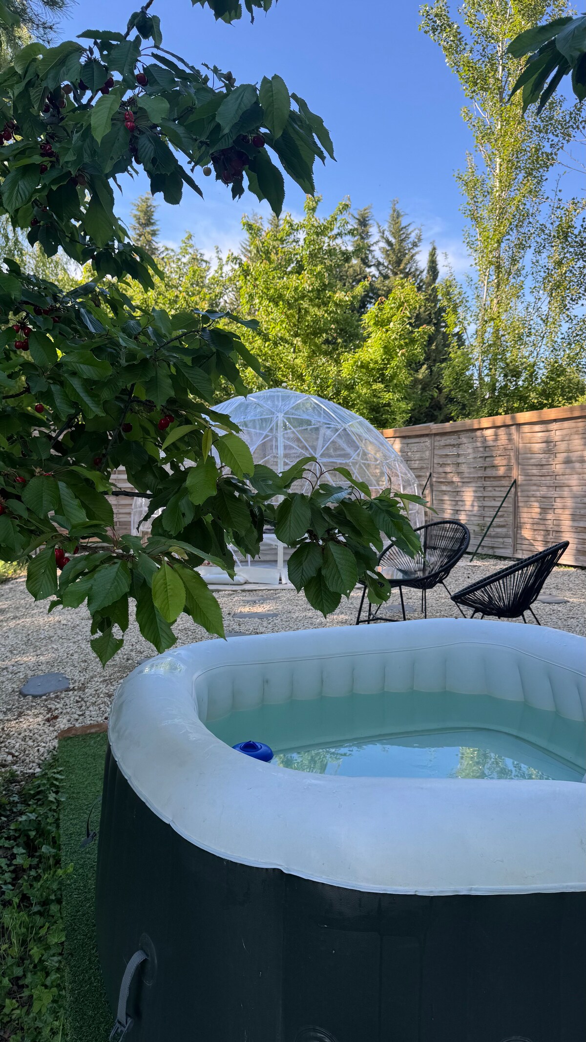 Bienvenue dans notre bulle située au cœur de la nature dans le Vaucluse. Nichée en bord de vignes dans un coin ombragé, ce petit cocon est l'endroit idéal pour se ressourcer et se reconnecter avec la nature. Vous pourrez également profiter d'un spa privé et illimité pour vous détendre en toute intimité, ainsi que d'une douche solaire et de toilettes sèches pour une expérience de camping écologique.
