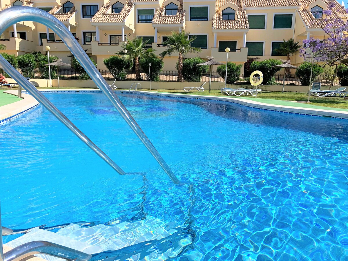 Jedna od najvećih atrakcija ovog stana je veličanstveni bazen koji se nalazi nekoliko metara od ulaza u kuću. Gosti mogu da se opuste na terasi s pogledom na bazen i uživaju u svom omiljenom piću. Stan se nalazi u veoma mirnoj urbanizaciji. Ima čajnu kuhinju opremljenu mašinom za pranje veša, tosterom, mikrotalasnom rernom, aparatom za kafu i frižiderom. Plaža je udaljena 10 minuta hoda, a supermarket je udaljen 200 metara.