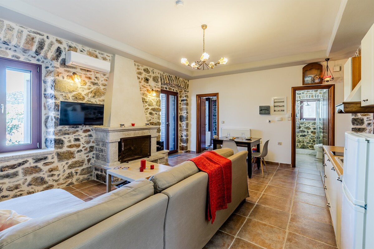 Obnovljena tradicionalna pećina uz poštovanje istorije i arhitekture Manija. Ovaj 400 godina star apartman u pećini pruža jedinstveno iskustvo posetiocima, kombinujući autentičnost pećine sa modernim pogodnostima. Zgrada je u potpunosti izgrađena od kamena u tradicionalnom stilu Manija. Unutra ćete naći autentičnu rezbariju u steni, diskretno osvetljenu, koja je otkrivena i istaknuta tokom pažljive restauracije prostora.