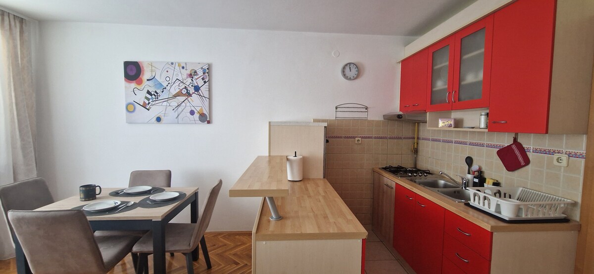 Dobro došli u naš moderni stan u Velikoj Gorici, savršen za svakoga ko putuje ili želi da uživa u udobnosti u blizini aerodroma! Smješten samo nekoliko minuta od aerodroma, nudi kuhinju, trpezariju, prostran dnevni boravak, udobnu spavaću sobu i moderno kupatilo. Stan je klimatizovan, ima besplatan parking i elektronsku bravu za jednostavan ulazak. Opustite se uz Netflix na TV-u i uživajte u privatnosti i udobnosti. Idealno za poslovne putnike i turiste!