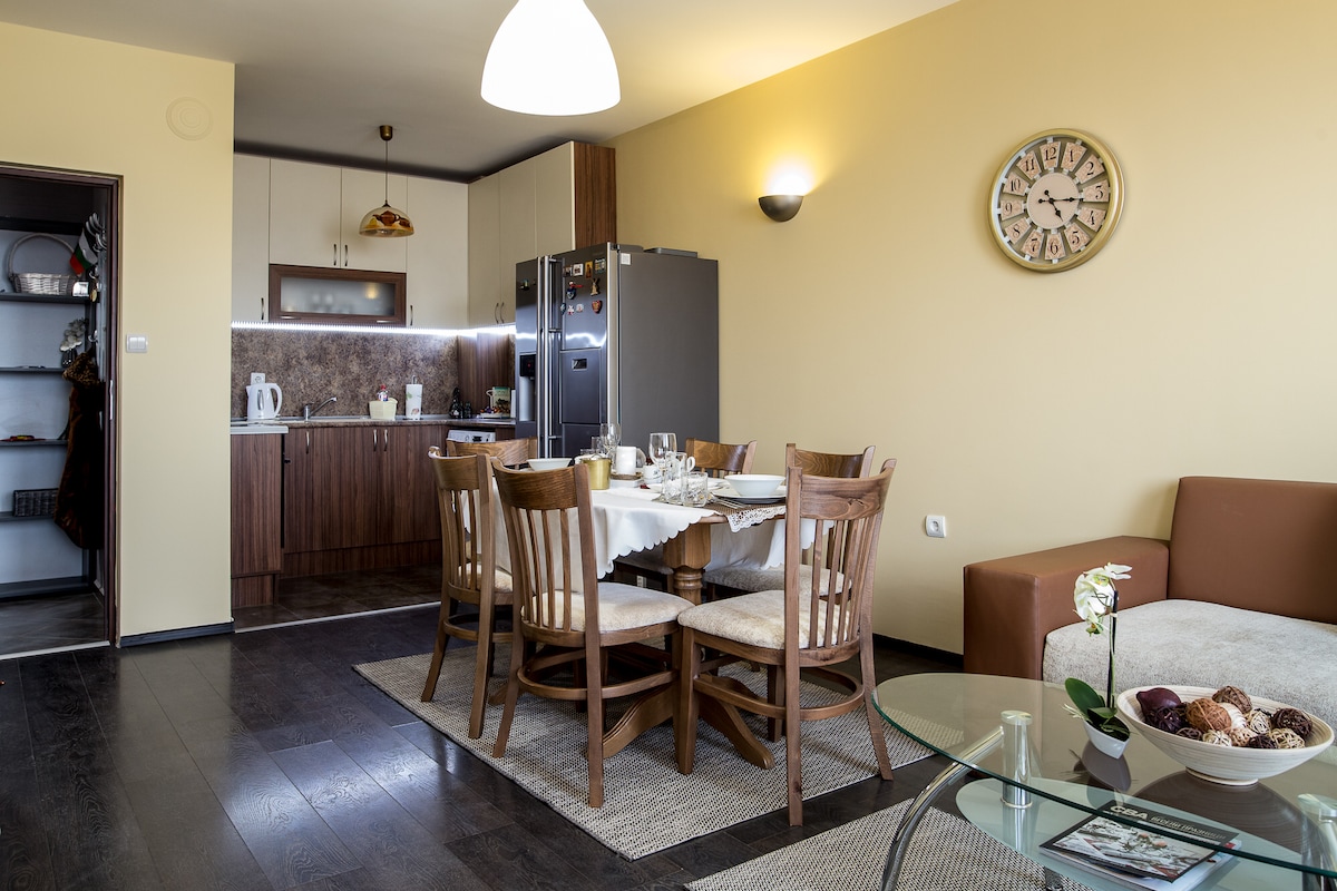 Apartman Trinavis Green vas poziva u miran, prefinjen prostor. Na samo nekoliko koraka od najvećeg gradskog parka i na kratkoj šetnji do starog grada, ova jedinica nudi dve spavaće sobe, dva kupatila, potpuno opremljenu kuhinju sa trpezarijom, svetli dnevni boravak i privatnu terasu sa pogledom na park i brda. Uživaćete u brzom Wi-Fi mrežom, privatnom parkingu, grejanju na gas i klima-uređaju u svakoj sobi. Idealno za parove, porodice ili poslovne putnike, spokoj i udobnost na najboljoj lokaciji u Velikom Trnovu.