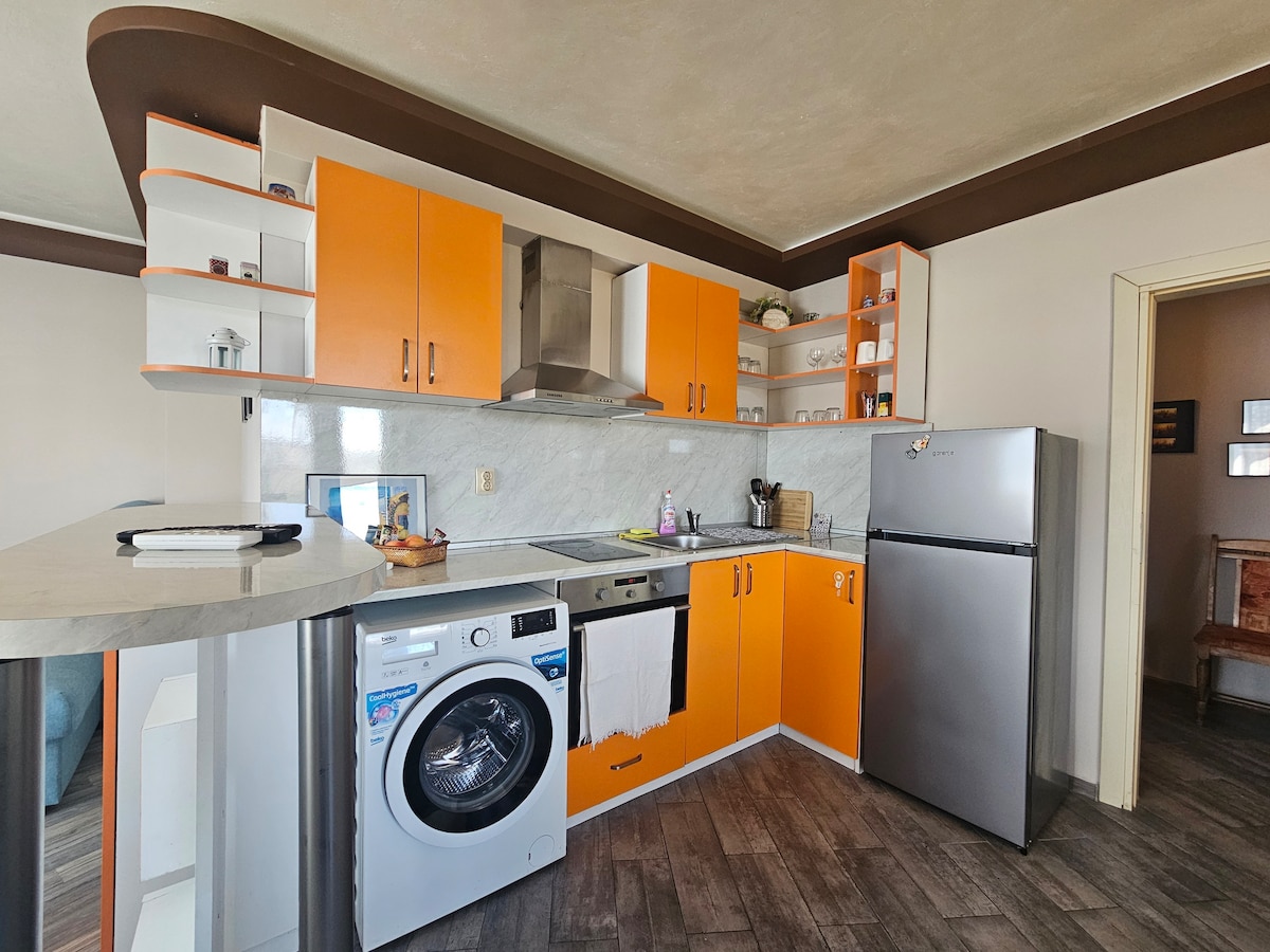 Udoban i svetao stan u centru Gabrova, na pešačkoj udaljenosti od restorana, prodavnica i atrakcija. Ima dve terase, idealne za jutarnju kafu ili mirno veče. Kuhinja je potpuno opremljena: aparat za kafu, mašina za sudove, mikrotalasna pećnica i šporet. Tu je spavaća soba sa bračnim krevetom i soba sa dva kreveta za jednu osobu, pogodna za porodice ili prijatelje. Dva kupatila sa fen za kosu. Klima-uređaj i grejanje na gas pružaju udobnost u svim godišnjim dobima. Pogodno za kratke i duže boravke, sa gostoljubivom atmosferom!