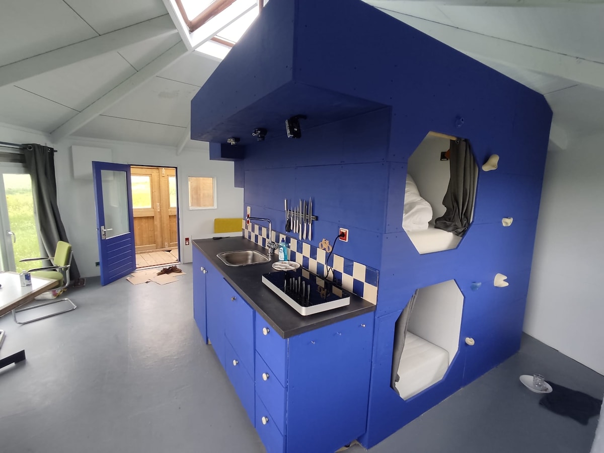 Er even romantisch tussenuit aan de waterkant met uitzicht op voorbij varende boten op een heerlijk plekje. Je kunt hier zwemmen! Met de alle gemakken zoals: een riante buiten keuken met een wasbak, oven, koelkast en 2 pits kookplaat. Een prive badkamer, gevulde minibar, koffie en thee, 1 heerlijk 2 persoons bed (180breedx240lang) en je eigen tuin! De badkamer is voorzien van alle gemakken met onder andere vloerverwarming, een stortdouche, wasbak en toilet. Clamping in Holland!