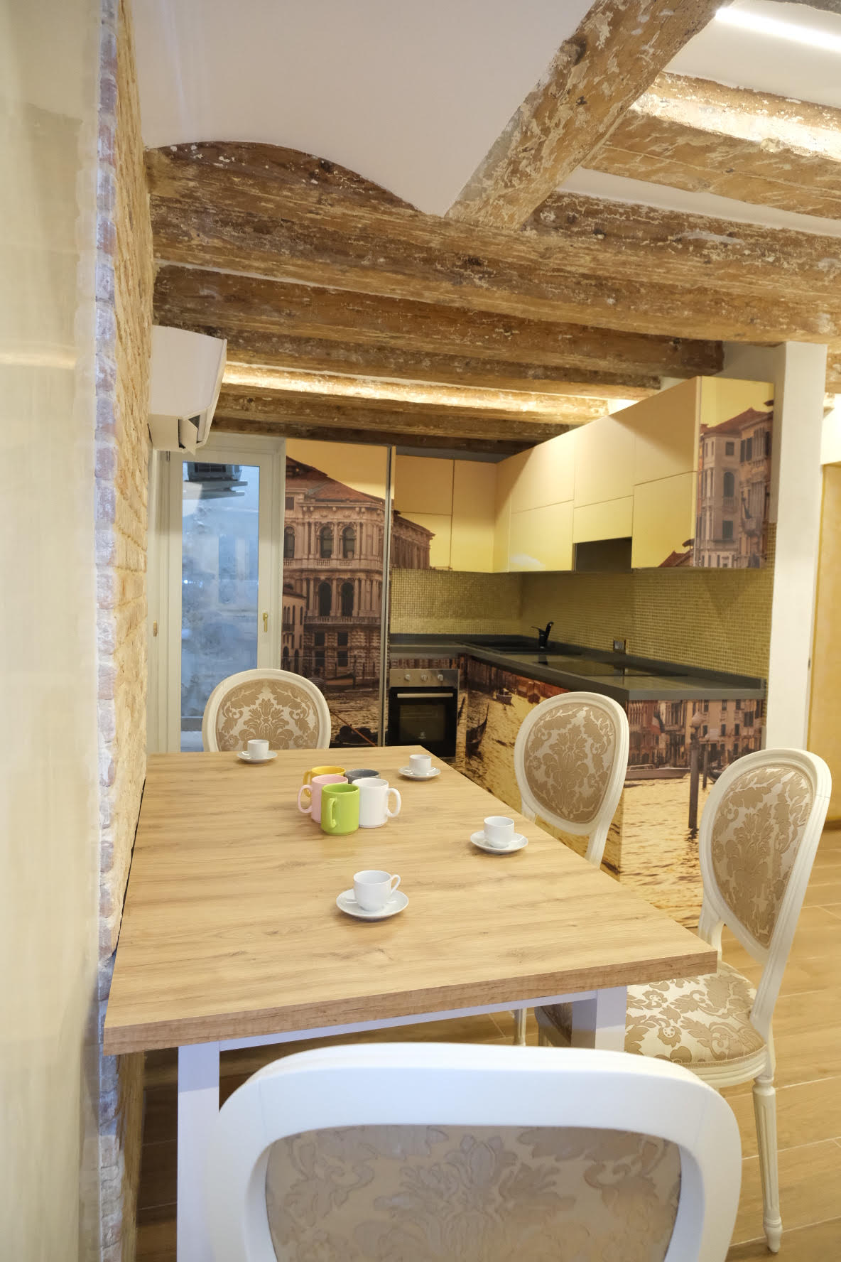 Elegantan stan u klasičnom venecijanskom stilu, nedavno renoviran, nalazi se u srcu grada, 20 metara od glavne ulice Strada Nova, nedaleko od stanice Ca' D' oro vaporetto. Objekat se nalazi u samom centru, u blizini svih vrsta prodavnica. To je fantastično mjesto i za stanovnike i za posjetioce. Stan je opremljen svim udobnostima: klima uređajem, grijanjem, mašinom za pranje veša, TV-om, rernom, mikrotalasnom rernom, frižiderom, zamrzivačem itd.