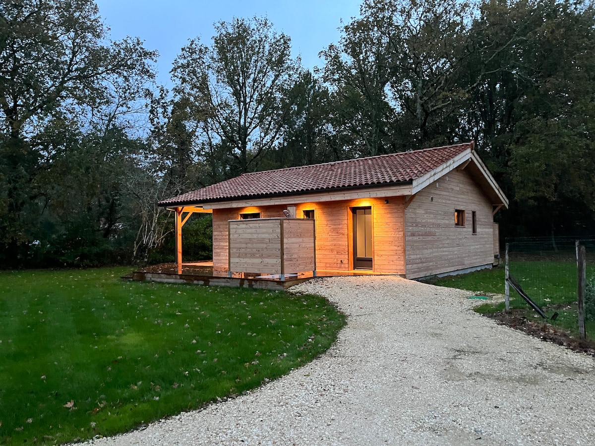 Logement indépendant qui se situe sur le terrain de la maison(haie séparative)où nous vivons en famille avec 2 chats (nous travaillons). À 1km de l'océan, lodge de 20 M2 équipé d'un espace cuisine, d'une chambre et d'une salle d'eau avec wc. Belle terrasse extérieure en prolongement. Cabanon pour accueillir vos vélos (pas adapté pour les motos). Climatisation, chauffage et wifi. Possibilité de bénéficier de vélos et de planches de surf en supplément sur place. Draps et serviettes fournis.