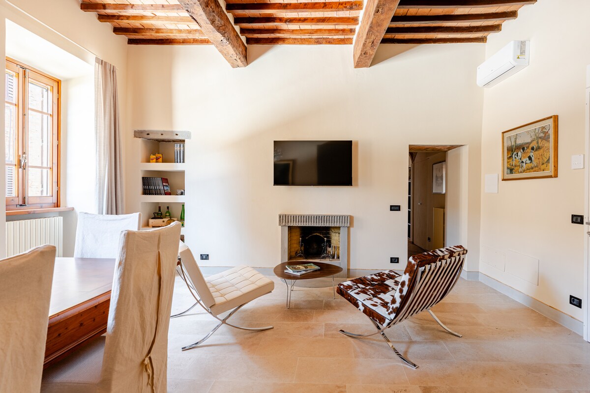 Sa svakog prozora kuće pruža se predivan pogled na valovite toskanske brežuljke, što je stalno uživanje tokom celog boravka. Dom je svetao i prijatan, sa udobnim spavaćim sobama od kojih svaka ima sopstveno kupatilo, dnevnim boravkom sa kaminom i potpuno opremljenom kuhinjom, pravim srcem doma. Za one koji žele, moguće je – na zahtev – uživati u jednostavnom i autentičnom trenutku zajedničkog kuvanja, baš kao u porodičnom domu. Mirno utočište u srcu Kjantija.