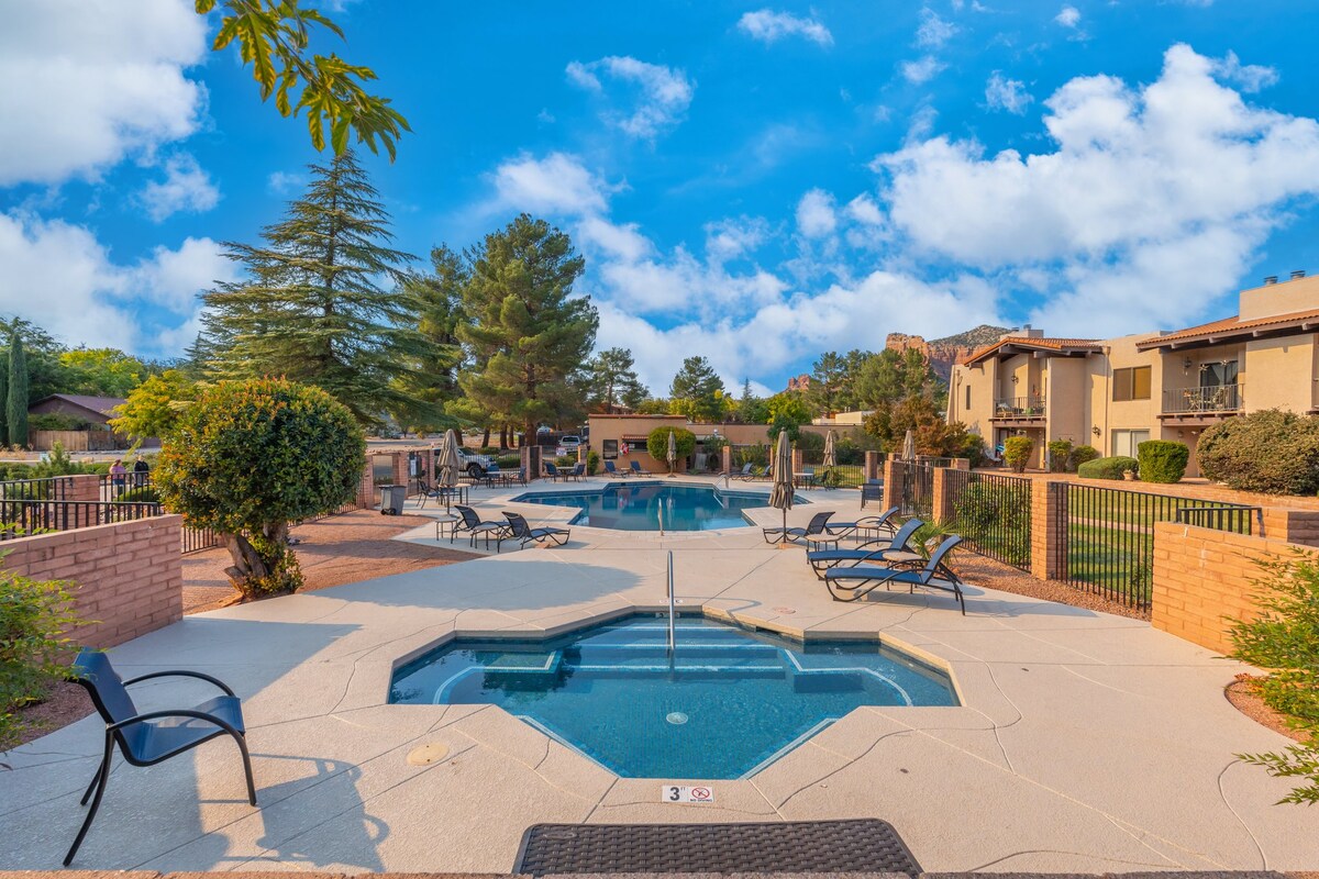 Relax after a full day exploring at this peaceful 2 bd/2bath condo. Only a mile to Bell Rock hiking trails, and 5-20 min drive to all famous Sedona MTB & hiking trails. Enjoy the amenities - BBQ, pool,spa,tennis,pickleball. Walking distance to grocery, restaurants, bars & wine tasting. 2 king beds plus a twin foldout, all w/ memory foam. One en-suite bath w/ shower, and 2nd w/tub & shower. Fully stocked kitchen & in-unit laundry. Get work done at a dedicated workspace. Relax on your 2 patios!