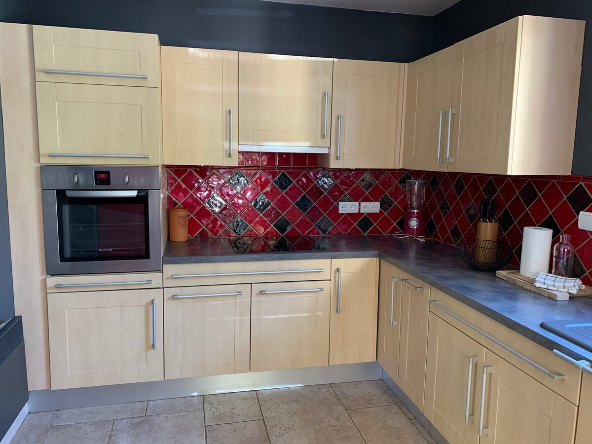 Pobjegnite kao par ili s prijateljima u ovom netipičnom stanu. Ovaj podpleks nudi svu udobnost stana u prizemlju, opremljenu i opremljenu kuhinju. Kupatilo, dnevni boravak sa kaučem na razvlačenje sa krevetom dimenzija 140x190, spavaća soba sa bračnim krevetom. U podrumu, podrum je potpuno renoviran i redizajniran za vaše uživanje. SPA CENTAR za 4 osobe, sa hidromasažnim mlaznicama i projektorom za gledanje filmova ili serija.
