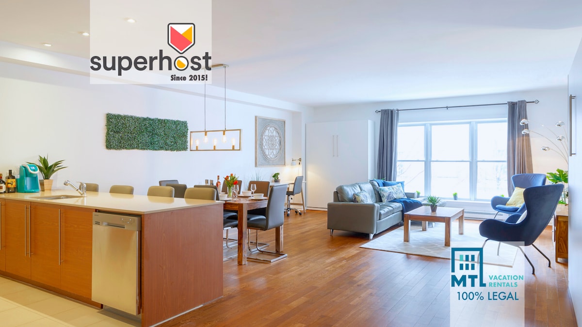 🏆 GUEST FAVORITE 🏆 Experience Montreal as a local! This superb loft style condo combines a fully equipped kitchen, dining area and living room. Located in the heart of the Plateau Mont-Royal only 3 min from the subway station. Walk score of 100%, everything is at your doorstep: cafés, bars, boutiques, restaurants…There is a queen bed in the bedroom area along with a queen bed and a queen murphy bed in the vast living space. The nice bathroom has a separate shower and bath. Contact us!