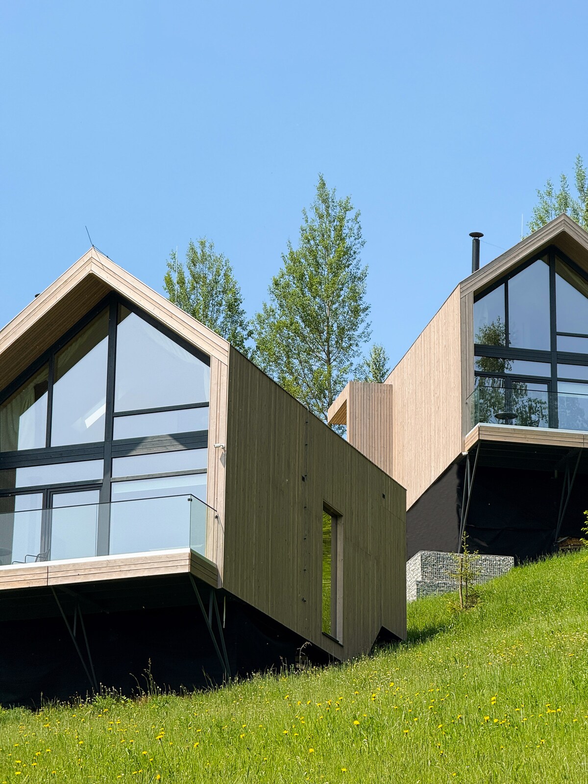 Moderna vikendica za dvoje, idealna za romantičan odmor ili rad na daljinu. U blizini je reka, okružena šumom i planinama. Udobnost i udobnost unutra stvara funkcionalan dizajnerski enterijer u formatu studija, koji će vam omogućiti da uživate u odmoru u prirodi. U vikendici: - veliki bračni krevet - kupatilo sa tušem - frižider, šporet, posuđe - peć na drva - prostrana terasa sa prelepim pogledom - knjige i društvene igre - Wi-Fi