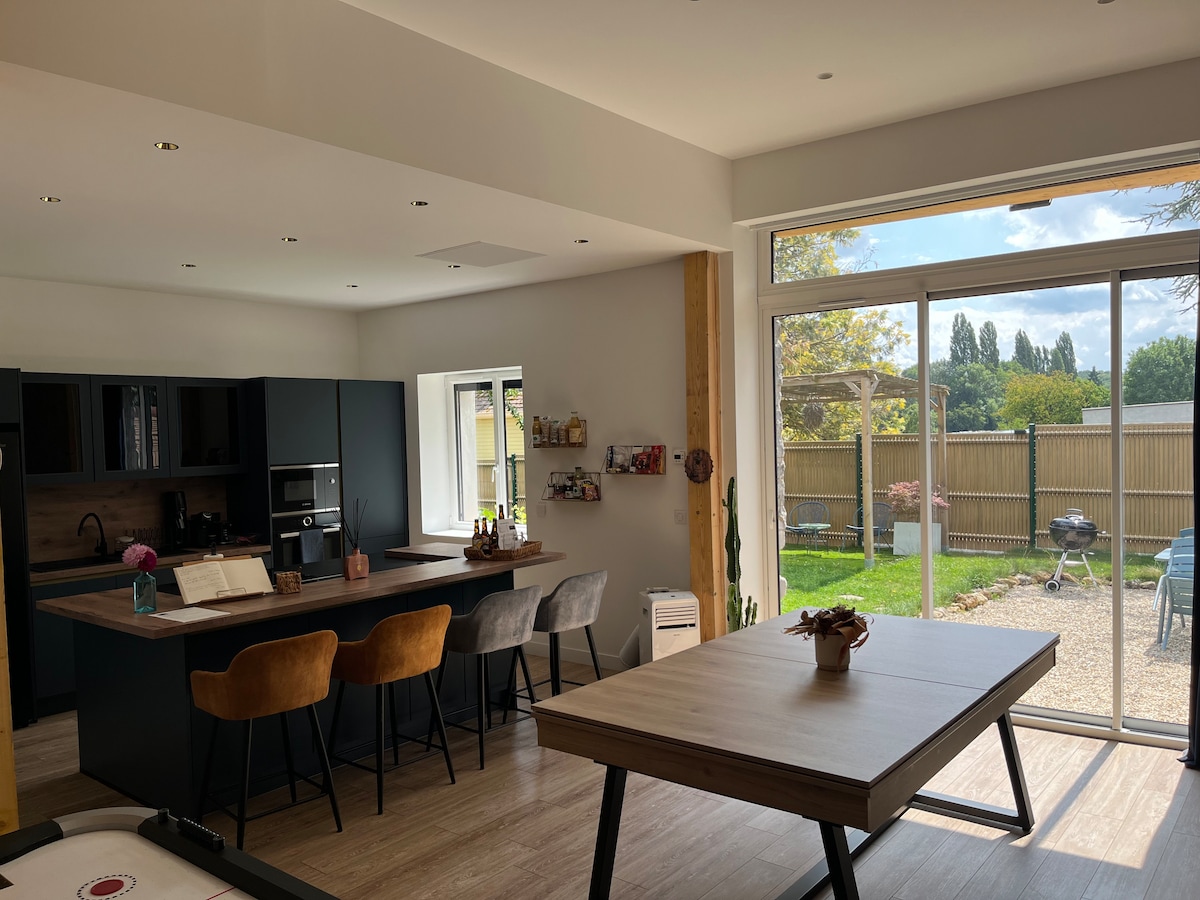 Autentičnost, ljepota i udobnost. Smješten pored rijeke Sene, u umjetničkom selu u regionu Šampanja, ovaj bivši samostan se nalazi samo 100 km od Pariza (55mn direktnog voza između susjednih Nogent s/Sene i Gare de l'Est). Ovo je autentično i moderno mjesto, nedavno renovirano, prepuno 400 godina istorije. Kuću smo uredili s ljubavlju i pažnjom, oprema je veoma velikodušna. Dostupni su bicikli različitih veličina, kajaci, SUP-ovi i druga oprema.