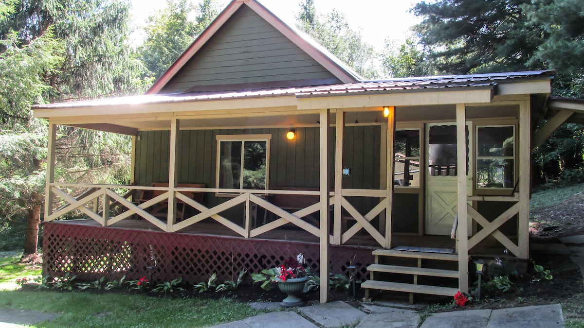 Here you can relax with the whole family or it’s a perfect getaway for 2. From Spring to early winter we’ll have mini goats and free range rabbits & chickens. The creek is perfect for tubing on a hot summer day.Have a picnic in the trees next to the water.Just a mile away is an ice cream/petting zoo and greenhouse with amish gifts. Next door is our operating hobby farm with donkeys, sheep, goats and chickens.If you’re looking for a nice relaxing retreat, we have what you’re looking for.