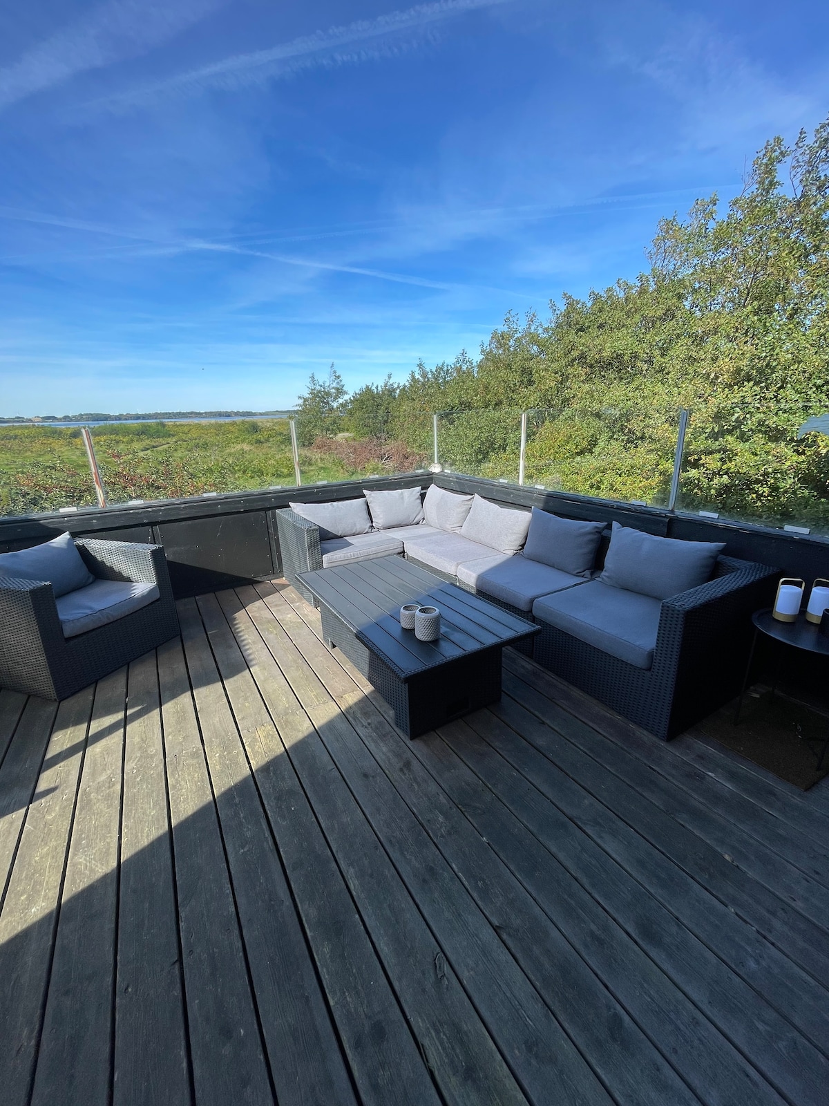 Bright and modern summer house with sea view – just a short walk to the beach. The house sleeps up to 8 with 2 bedrooms and 2 cozy lofts. Fully equipped kitchen, fast Wi-Fi, and only 10 min. drive to Landal resort with pool and activities. Perfect for families, couples or friends looking to relax by the coast. Enjoy a large enclosed terrace with outdoor dining, lounge area and a refreshing cold plunge spa tub (ONLY COLD WATER AND NO BUBBLES!).