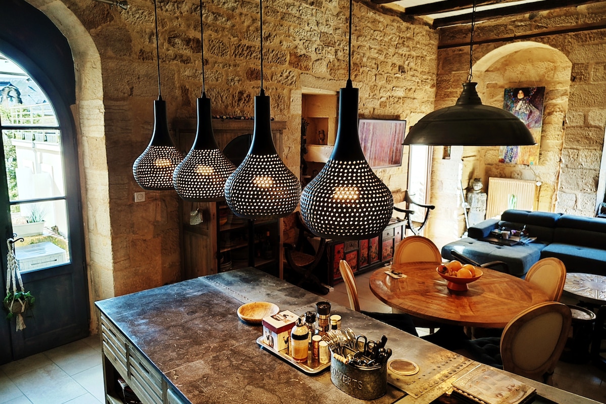 Posvećeno posebno ljubiteljima! Dođite i otkrijte ili ponovo otkrijte Périgord Noir u najegzotičnijem i iznenađujućem selu u dolini Dordonje, plaži i najpoznatijim znamenitostima regiona nadohvat ruke. Smješteno u istorijskoj zgradi, u srcu sela i na obali, ovo jedinstveno potkrovlje nudi vam okrugli krevet prečnika 2,30m, privatni spa centar i nevjerovatan pogled na Dordonju i njegovu dolinu...