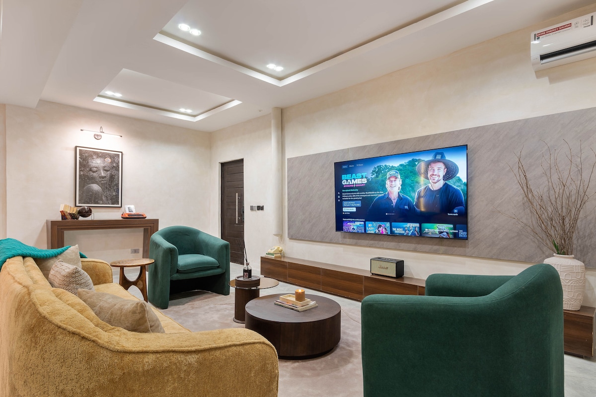Dobro došli u naš elegantni i udobni 1-BR dragulj u srcu grada uz integraciju Google Home-a. Savršeno za putnike koji putuju sami ili parove koji traže praktičnost i udobnost. Svojim glasom upravljajte svjetlima, temperaturom i zabavnim sadržajima. Nalazi se u živopisnoj četvrti sa jednostavnim pristupom bilo kojem dijelu Lagosa. Povezano putovanje vas čeka.