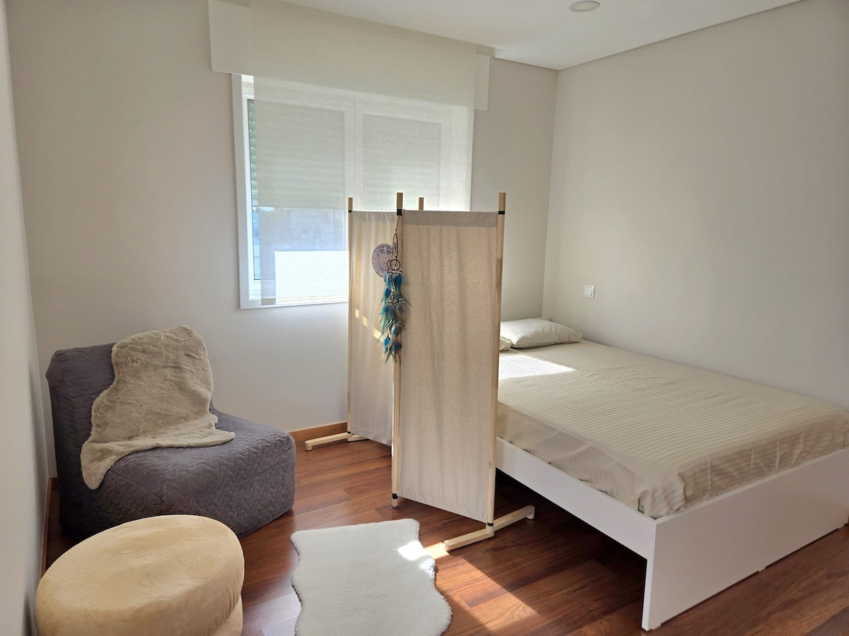 You have direct access to the backyard with lawn, chairs, barbecue and a small vegetable plantation. The place is an openspace on the ground floor with bathroom and a small but well equipped kitchen. It's close to the beach (1km) and very clean river (500m). There is also a pool and aqua park nearby. The neighborhood is quite. My place is good for couples, solo adventurers, business travelers, and families (with kids). It's right along the Camino de Santiago path.